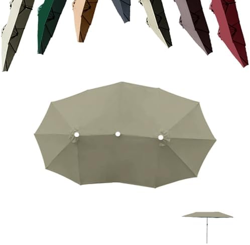 Upgrade your outdoor experience with our large patio parasol changing canopy, designed to enhance comfort and style for your gardens, beaches, pergolas, and swimming pools. This versatile replacement cloth for terrace umbrellas offers a perfect blend of durability and elegance, ensuring you enjoy a comfortable shaded area in various settings. Crafted from high-quality polyester, our canopy is available in a range of appealing colors, including Khaki, Beige, Red, Green, Coffee, Sand, and Grey. With dimensions of 15x9ft and supported by 12 sturdy ribs, this canopy provides ample coverage, allowing you to relax and unwind without the worry of sun exposure. Please note that the package includes only the replacement umbrella cloth; brackets and ribs are not included. It's important to keep in mind that due to lighting and screen variations, the actual color may differ slightly from what is displayed. Additionally, slight manual measurement discrepancies of 1-3 cm may occur, so we recommend checking the actual product for precise dimensions. Enhance your outdoor gatherings with this stylish and functional replacement canopy, ensuring that every moment spent outside is enjoyable and protected from the elements. Make your patio the ultimate relaxation spot with our beautifully crafted parasol canopy, providing both aesthetic appeal and practical shade.