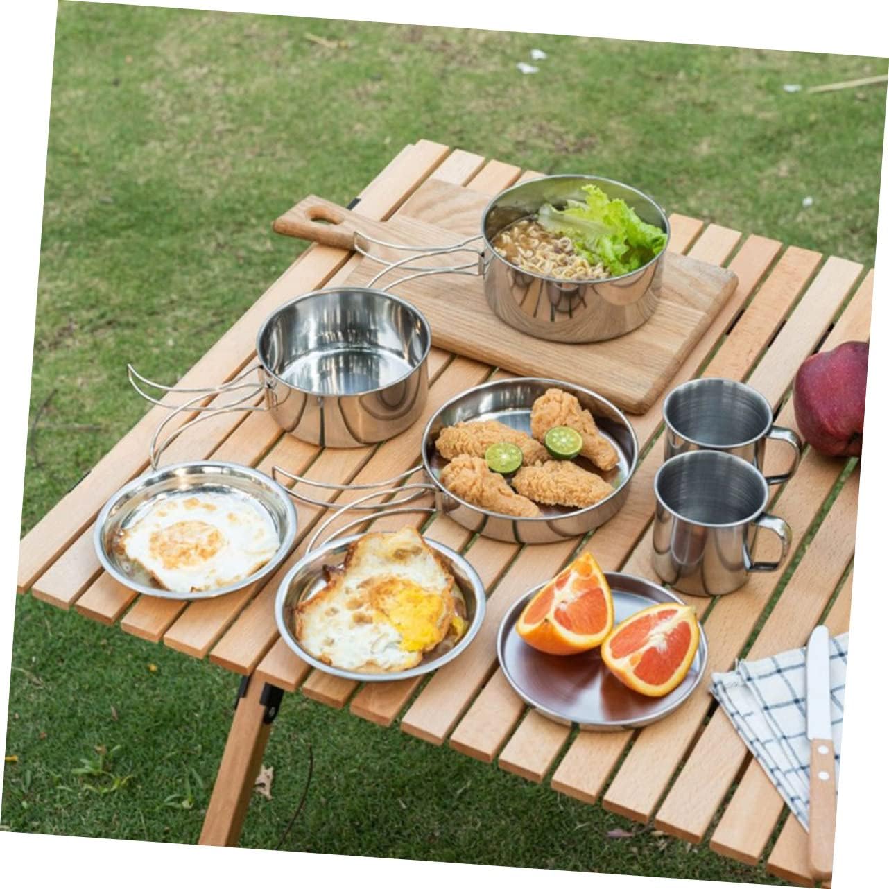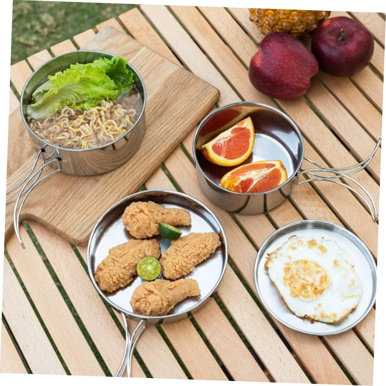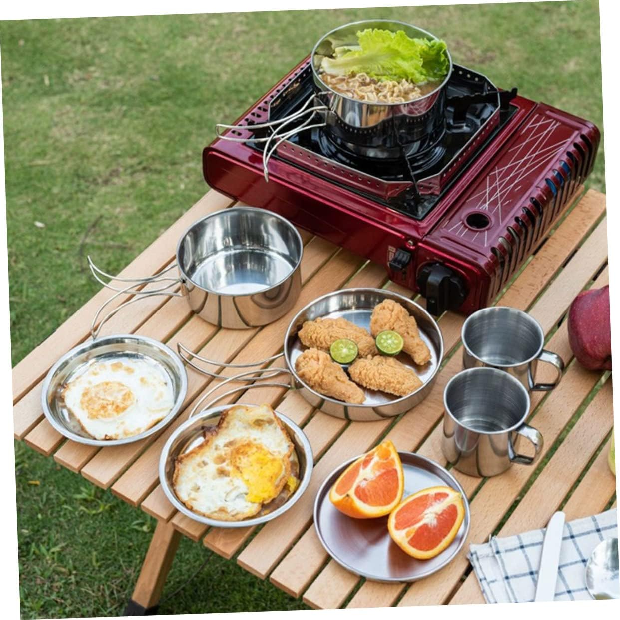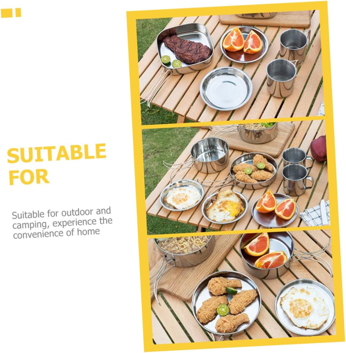 Package Include 1 × Stew Pot 1 × Frying Pan 2 × Plates 2 × Cups Features -Size:15.20X15.20X4.00cm/5.97X5.97X1.57in (Frying Pan) outdoor camping cookware -Material:Stainless steel camping cooking equipment -Size:7.50X7.50X7.00cm/2.95X2.95X2.75in (Cup) outdoor cooking supplies -Size:13.70X13.70X2.00cm/5.38X5.38X0.79in (Plate) portable cooking kit -Size:14.20X14.20X7.00cm/5.58X5.58X2.75in (Skillet) camping cookware -Color:Silver portable cook combinations - This set of and professional camping cookware can be a your friends who love camping supplies. - They have a wide occasion, suitable for outdoor activities like camping, hiking, backpacking, etc travel picnic cookware. - Made of stainless steel, these cookwares are , fast heating, for outdoor use camping cookware set. - This camping cookware is light and compact, compact and lightweight, convenient to carry camping cooking pan. - This set contains cups, plates, frying pan and stew pot, which can meet your needs picnic cookware kit.Goods Informationcamping cooking tool This set contains cups, plates, frying pan and stew pot, which can meet your needs. supplies With lightweight and overlapping design, they are convenient for you to carry outside.travel picnic cookware For outdoor activities like camping, hiking, backpacking, etc.outdoor cooking supplies Adoption of , the camping cookware is and to use