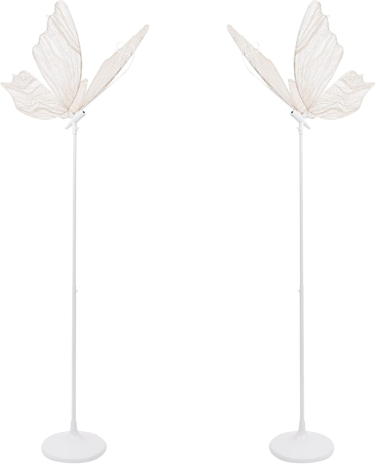 ApplicationIt can be used on the floor or ceiling. It is suitable for wedding stages, T-stage street guidance decorative lights, wedding halls, hotel layouts, window layouts, lamps, and hotel decorations. It can not only serve as decorations but also guide the guests' sight. They can be placed at the entrance or on important passages to guide guests to the right place, ensuring a smooth wedding experience. SpecificationsColor: Gold, WhiteStyle: ModernShape: ButterflyMaterial: Iron, Plastic, GauzeProcess: GildingAssembly Required: Yes Indoor/Outdoor Usage: IndoorSwitch Type: Push ButtonMounting Type: Floor Mount, Ceiling Mount(Hanging Wire Not Included)Plug Type: US StandardPower Source: Corded ElectricNumber of Pieces: 2Voltage: 110VLight Source Power: 48WLight Source Type: LED StripLight Color: WhiteColor Temperature: 6000KPower Cord Length: 1.5m/4.92ftGross Weight: 7.35kg/16.2 lbs Net Weight: 6.98kg/15.4 lbsLight Length: 60cm/23.6inProduct Height: 146-178cm/57.5-70.1inPackage Size: 62*62*16cm/24.4*24.4*6.3inPackage Included2* Butterfly Wedding Lights2* Bases2* Plastic Blocks1* English Installation InstructionAll Accessories for Assembly