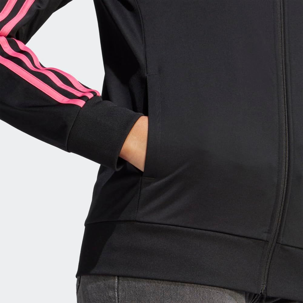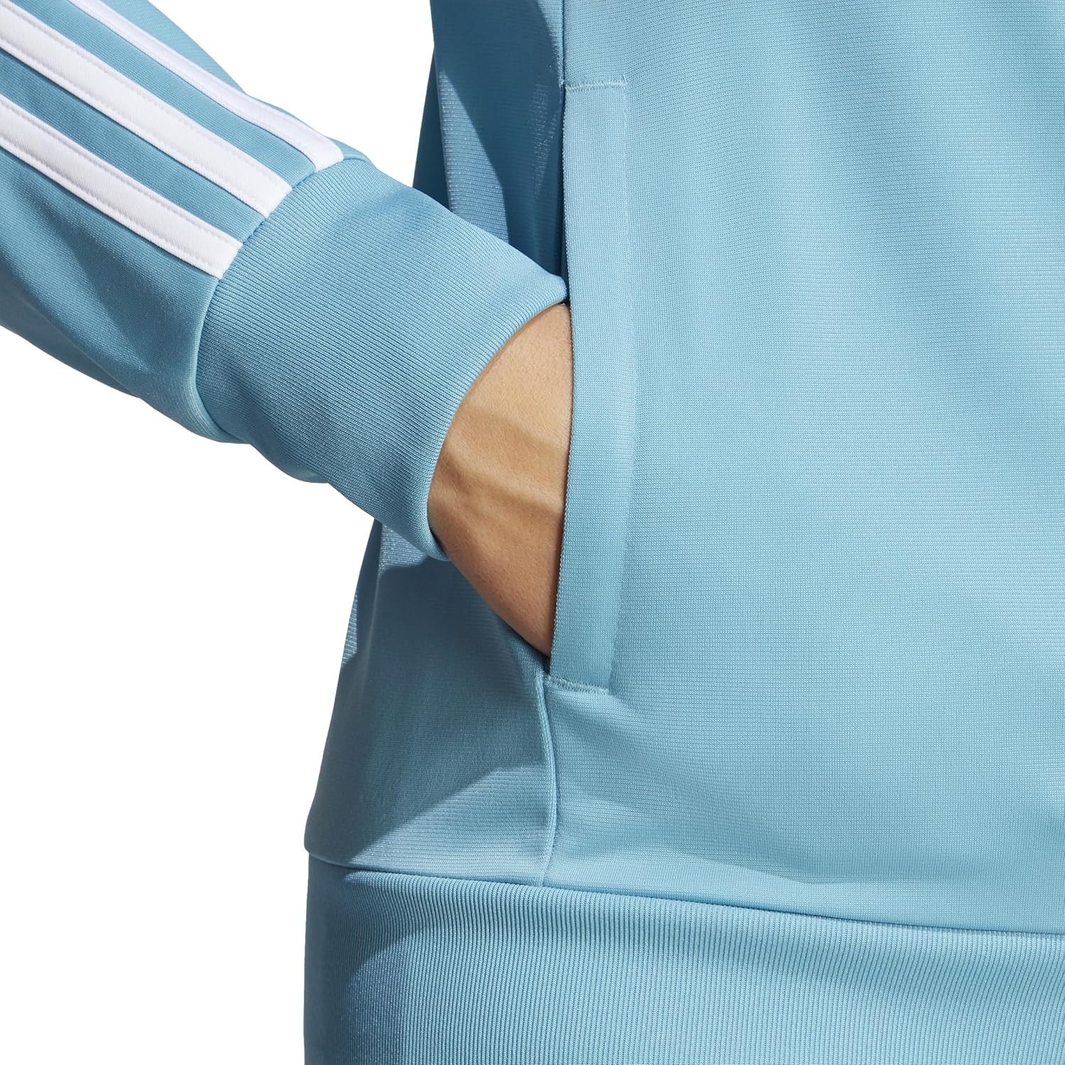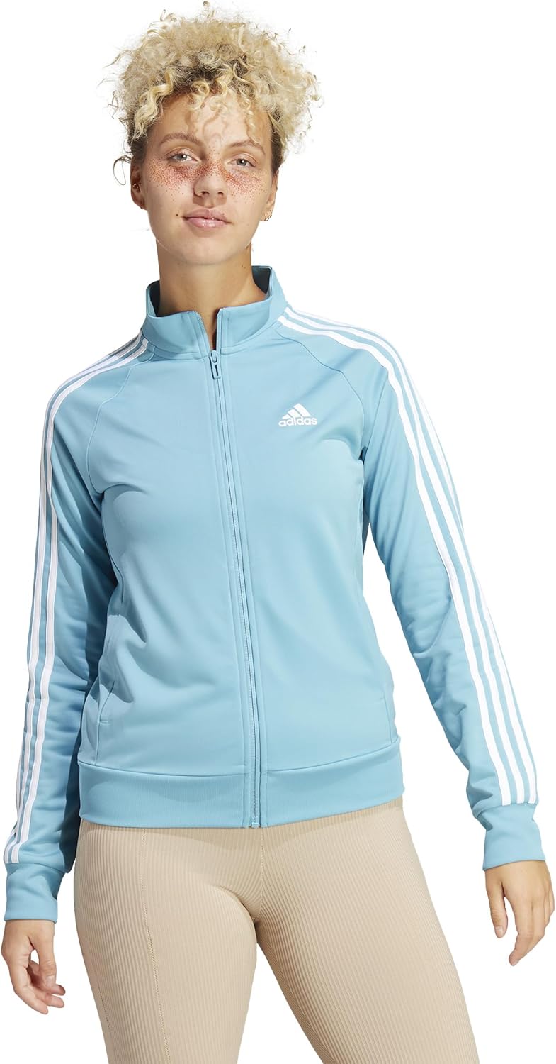 Keep warm and your look sleek in this women's adidas track jacket. It features ribbing on the cuffs and hem to lock in the slim fit. A full zip and stand-up collar provide you all the coverage you need if the weather gets gnarly.