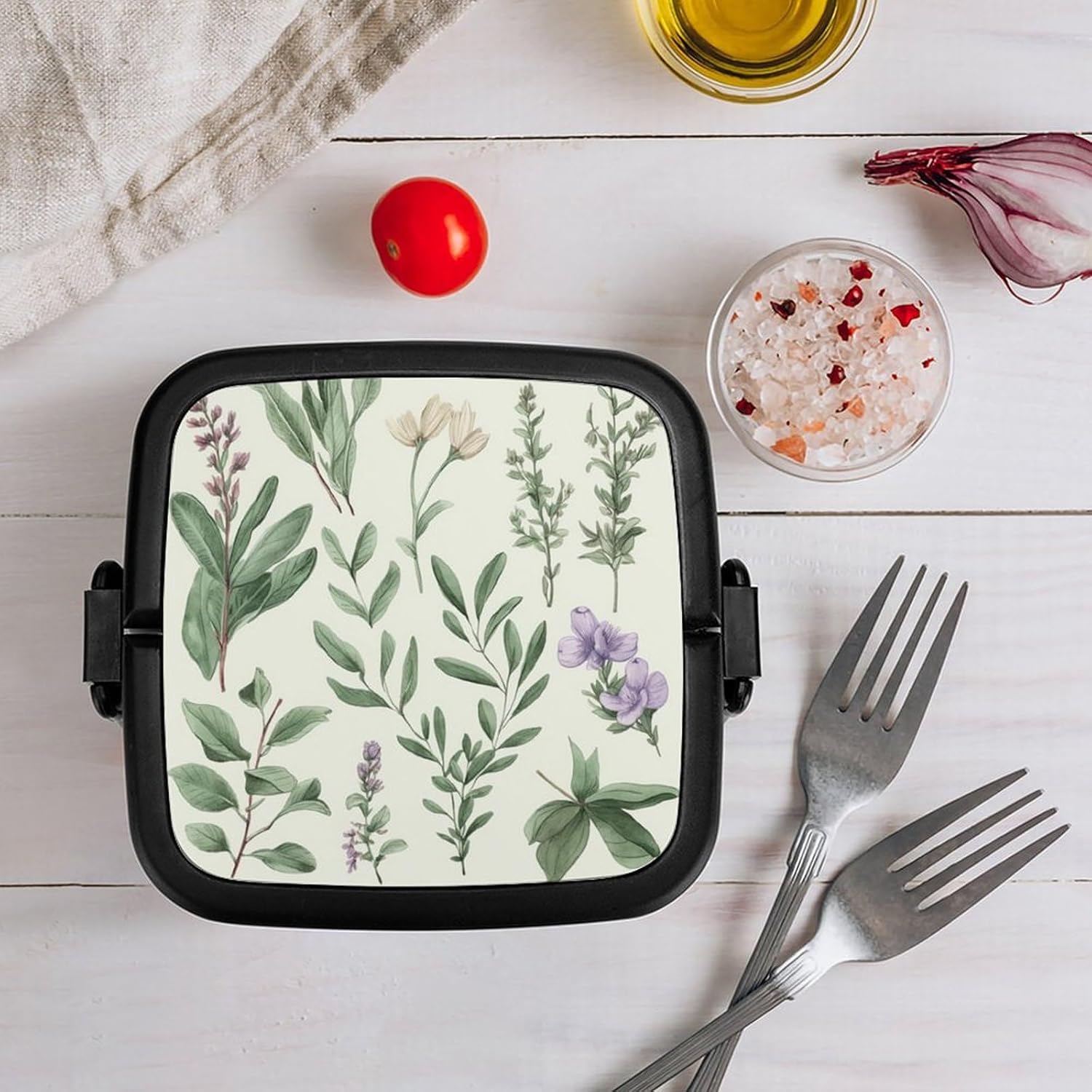 This box adult Bento Box is a must - have for those who are always on the go. Made from high - quality PP material, it's not only sturdy but also safe for storing foodThe double - layer design:lunch box large for women The tight - fitting seal ensures that no food leaks out, whether it's a juicy salad or a soupy dish. Plus, it keeps the food's smell inside, so you don't have to worry about any unpleasant odors in your bagThe clever divider design is another highlight:Green Flower Herb Sage Leaves And Branches cooler lunch box It allows you to neatly separate different types of food. You can put your fresh vegetables in one section, fruits in another, and some snacks in the third. This way, each food item retains its original taste, giving you a wonderful dining experienceCarrying this bento box is a breeze:modern bento The snap - lock mechanism makes it easy to open and close, and the attached handle means you can carry it around effortlessly. Whether you're going to work, on a camping trip, or just out for a day of fun, this bento box is your perfect companionadult bento:Suitable for traveling, taking meals to work, taking fruits, camping and traveling, very light and portable. Washable and reusable. [Special Instructions] Note: This product cannot be put into the microwave