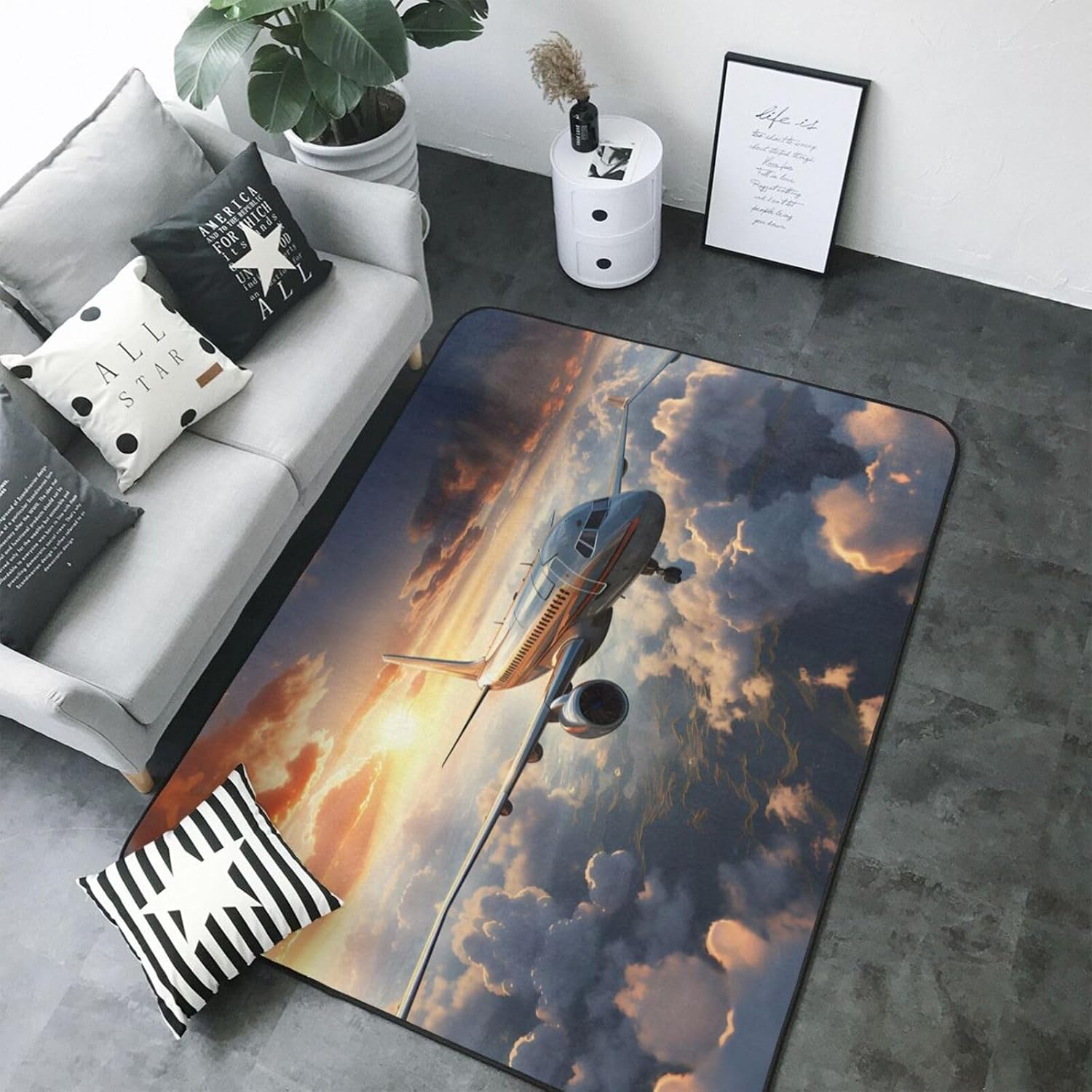 This Airplanes are soaring printed decorative carpet is made of polyester flannel, which is delicate and soft to the touch, with tight and regular pile. It will not pill or fade after long-term use, and will always look like new. The middle layer uses high-density memory foam, which can automatically adjust according to the foot shape and pressure, providing precise massage for tired feet and relieving fatigue. The bottom is designed with non-slip plastic bottom non-woven fabric, which can firmly grip the ground even when it encounters water or on smooth surfaces, ensuring the safety of the elderly and children. It is easy to clean daily, can be machine washed or hand washed, and is wear-resistant and does not shed. Exquisite stitching technology and high-quality tailoring, with smooth edges, are suitable for a variety of scenes such as bathrooms, living rooms, and bedrooms. Non-slip, comfortable, and durable, adding a touch of intimacy and elegance to your life.