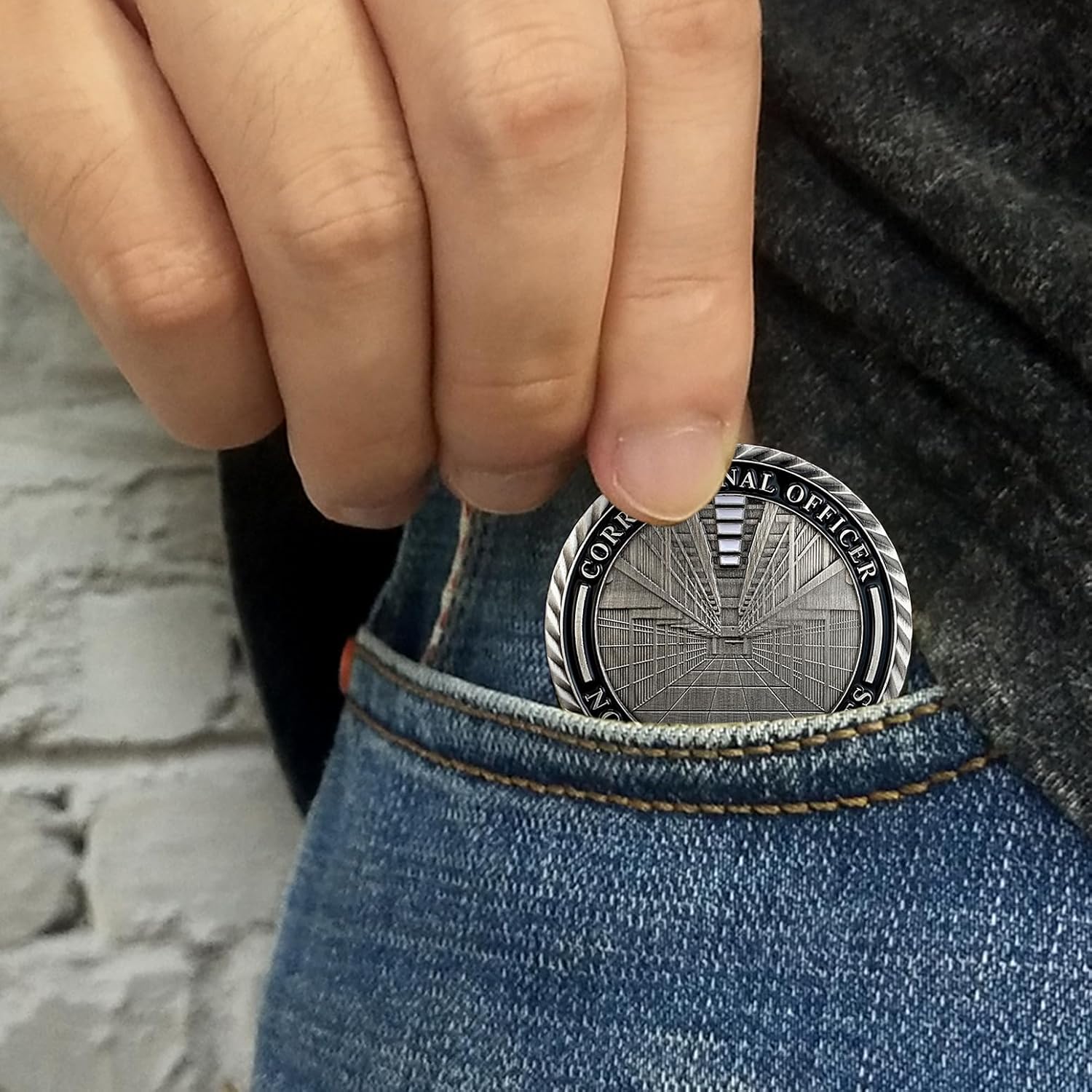 Thin gray line challenge coin for correctional officers. Honor and remember the correctional officers, including prison guards, probation officers, parole officers, bailiffs, and jailers. Material: zinc alloy with antique silver plated. Perfect gift to any occasion, such as Fathers' Day, Mother's Day, Birthday, Veterans Day, Valentine's Day, Christmas, Thanksgiving, Graduation, Wedding, Anniversary.
