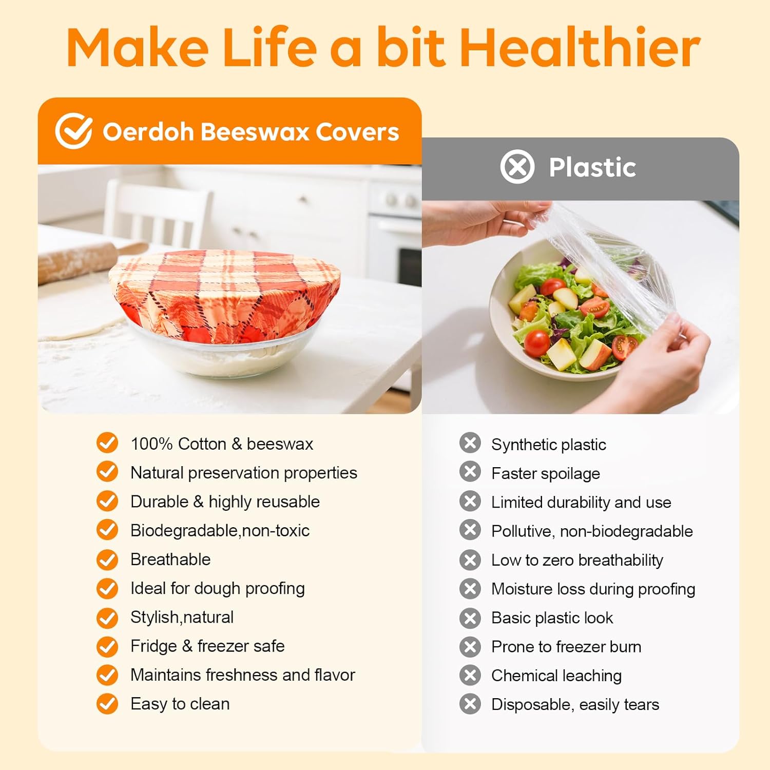 Oerdoh Bread Baker Set, 2 Packs XL Beeswax Braed Bag with Sealing Zip and 5 Packs Beeswax Bowl Covers (Maple Leaf Yellow)