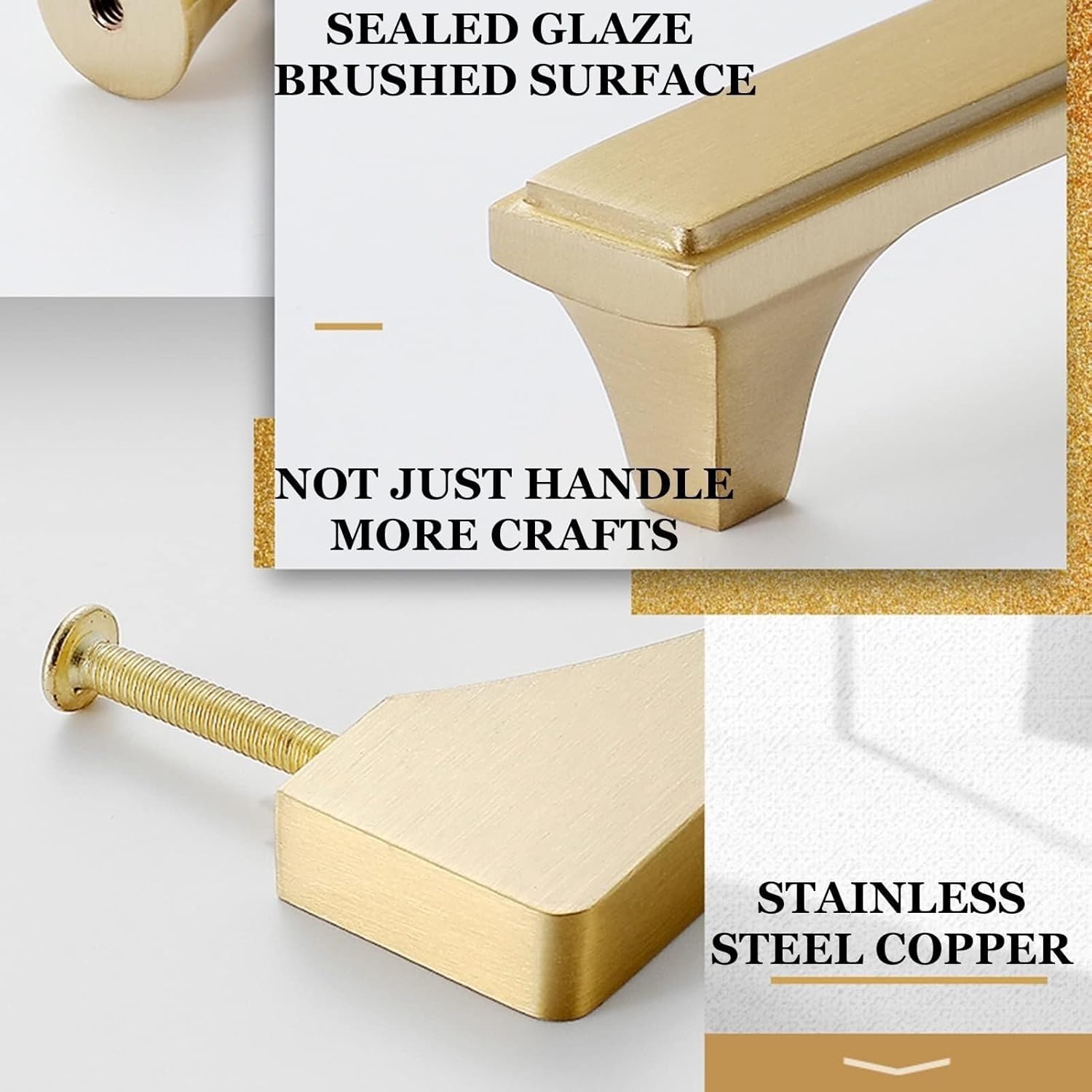 Product Details:Product Name:Kitchen Cabinet Handles/Kitchen Cabinet Hardware/Drawer Handles/Cabinet Pulls/Cabinet Door Handles/Bathroom Knobs/Dresser PullsHandles Color:GoldHandles Material:Pure copperHandles Size:Hole distance 64 mm/2.5 inch,total length 110mm/4.3 inch,width 16mm/0.62 inch,height 35mm/1.3 inch;Hole distance 96 mm/3.7 inch,total length 143mm/5.6 inch,width 16mm/0.62 inch,height 35mm/1.3 inch;Hole distance 128mm/5 inch,total length 175mm/6.8 inch,width 16mm/0.62 inch,height 35mm/1.3 inch;Hole distance 160mm/6.2 inch,total length 210mm/8.2 inch,width 16mm/0.62 inch,height 35mm/1.3 inch;Hole distance 192mm/7.5 inch,total length 240mm/9.4 inch,width 16mm/0.62 inch,height 35mm/1.3 inchProduct Package:Handle * 6Widely used in:wardrobes,cabinets,drawers,shoe cabinets,sliding doors,bedside cabinets,etc.