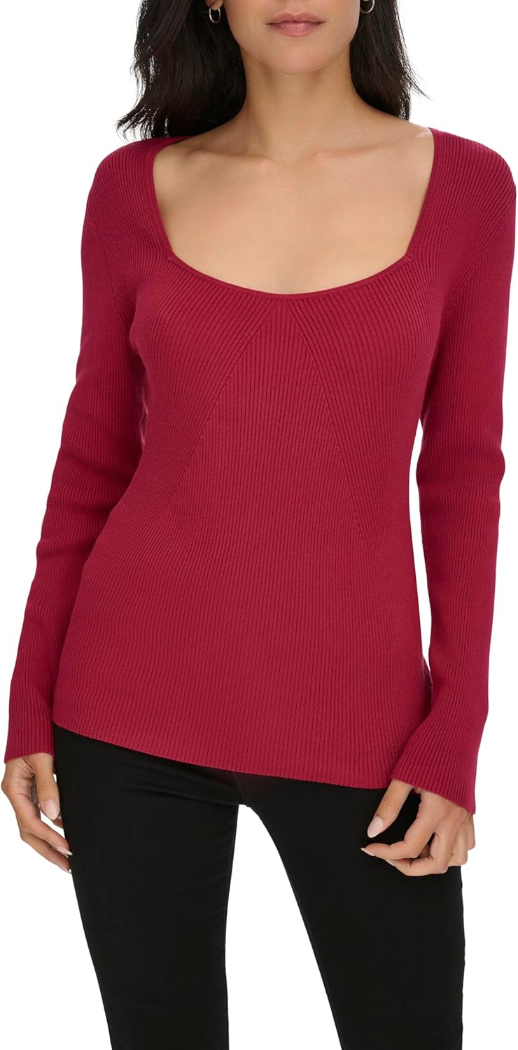 This Calvin Klein Women's Sportswear sweater is a long sleeve square neck sweater