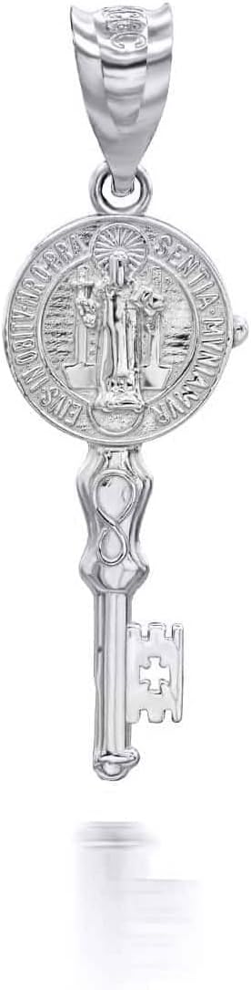 There is no special way prescribed for carrying or wearing this expertly crafted 10K yellow gold double-sided key of St. Benedict is a shimmering reminder of Jesus Christ's great sacrifice for all of us, according to the Saint's Prolog of his Rule. This shiny piece can also serve as a prayer of exorcism against Satan, a prayer for strength in time of temptation, a prayer for peace among ourselves and among the nations of the world, a prayer that the Cross of Christ be our light and guide, a prayer of firm rejection of all that is evil, a prayer of petition that we may with Christian courage "walk in God's ways, with the Gospel as our guide," as St. Benedict urges us. Saint Benedict has been also the motive of many collector's coins around the world. Key of Saint Benedict are sacramentals that may be blessed legitimately by any priest or any deacon.