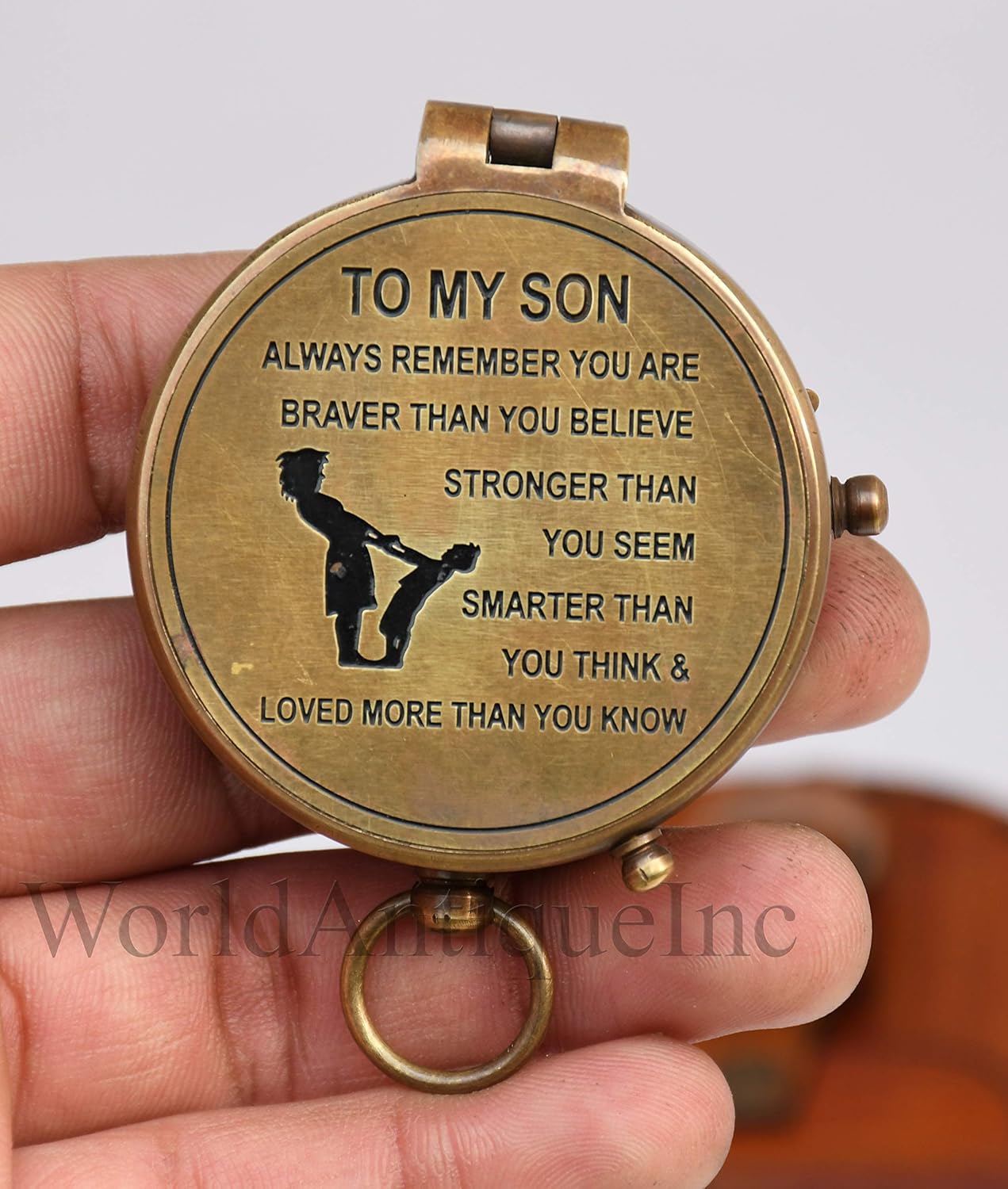 his solid brass Medium-Sized Pocket Compass is standard pocket compass size but still fits easily in your pocket. It has a small lever on the side of the compass that operates a needle lift mechanism to protect the compass bearing. The compass is the diameter of a standard pocket compass, Size-Compass: 50mmX18mm, Leather Case:2.5x2.5x1inches.. This compass is beautifully crafted from solid brass.