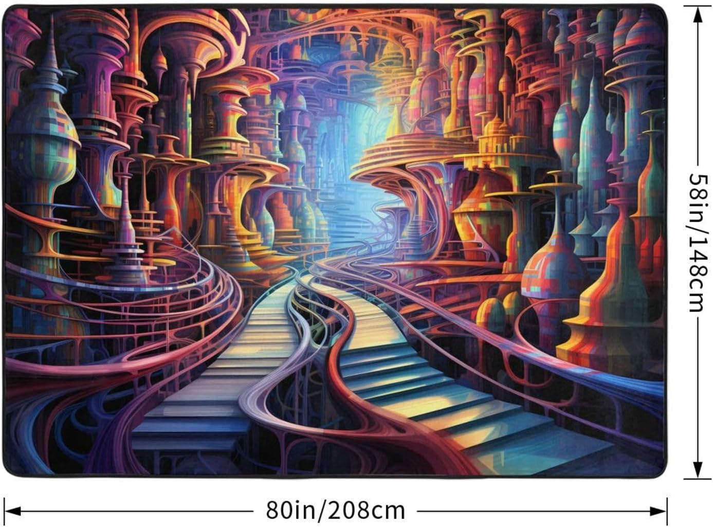 This Fantastic underground road printed decorative carpet is made of polyester flannel, which is delicate and soft to the touch, with tight and regular pile. It will not pill or fade after long-term use, and will always look like new. The middle layer uses high-density memory foam, which can automatically adjust according to the foot shape and pressure, providing precise massage for tired feet and relieving fatigue. The bottom is designed with non-slip plastic bottom non-woven fabric, which can firmly grip the ground even when it encounters water or on smooth surfaces, ensuring the safety of the elderly and children. It is easy to clean daily, can be machine washed or hand washed, and is wear-resistant and does not shed. Exquisite stitching technology and high-quality tailoring, with smooth edges, are suitable for a variety of scenes such as bathrooms, living rooms, and bedrooms. Non-slip, comfortable, and durable, adding a touch of intimacy and elegance to your life.