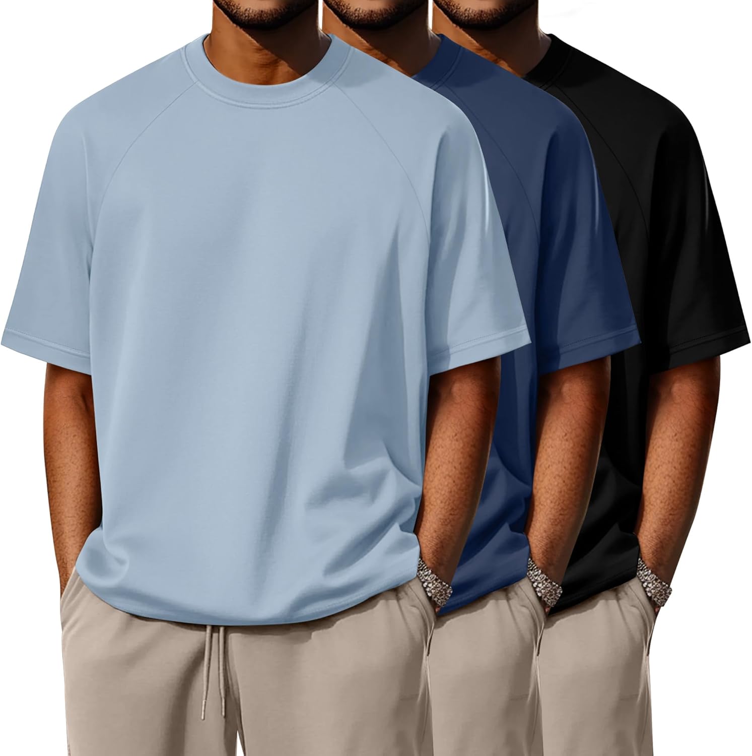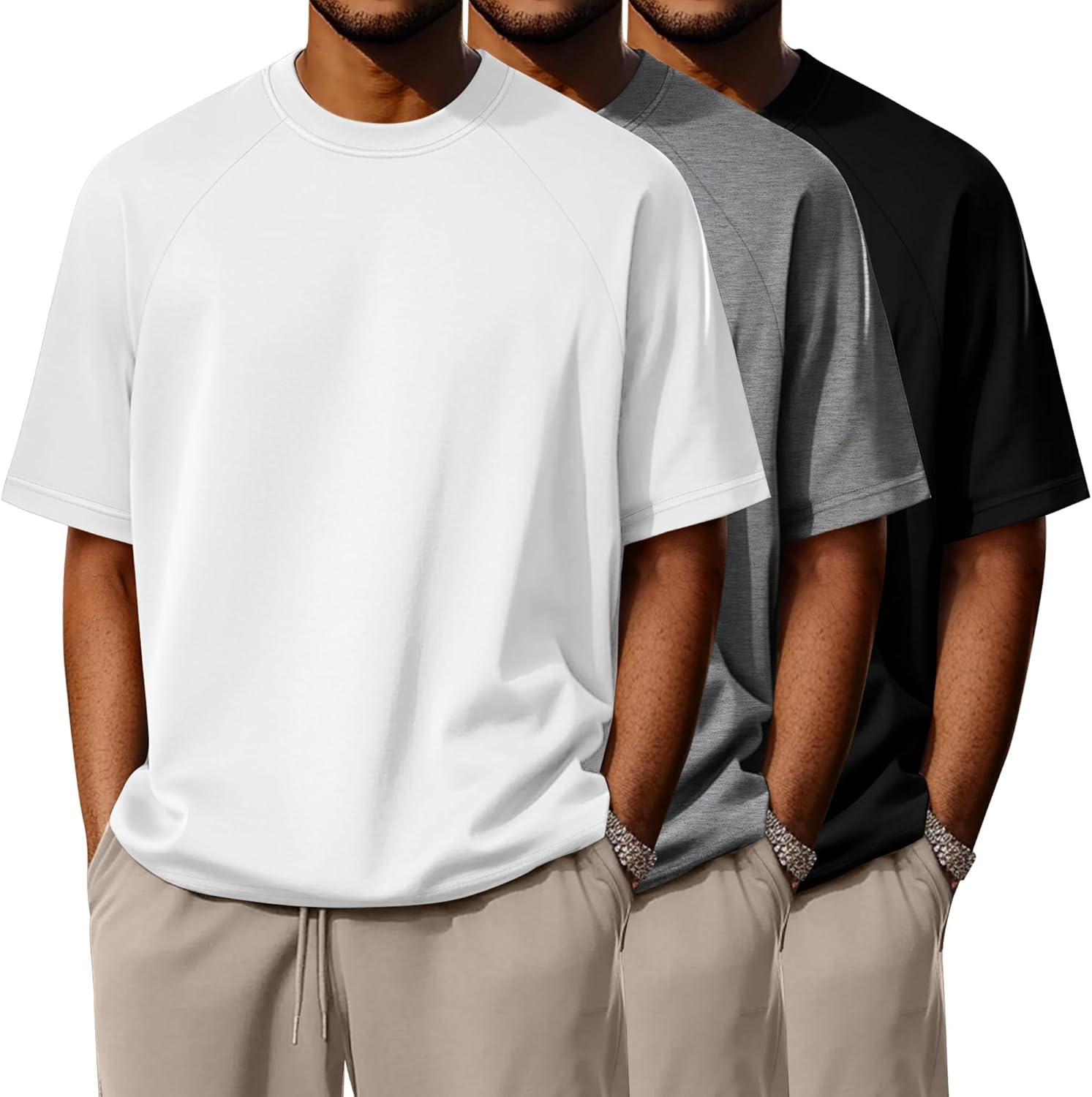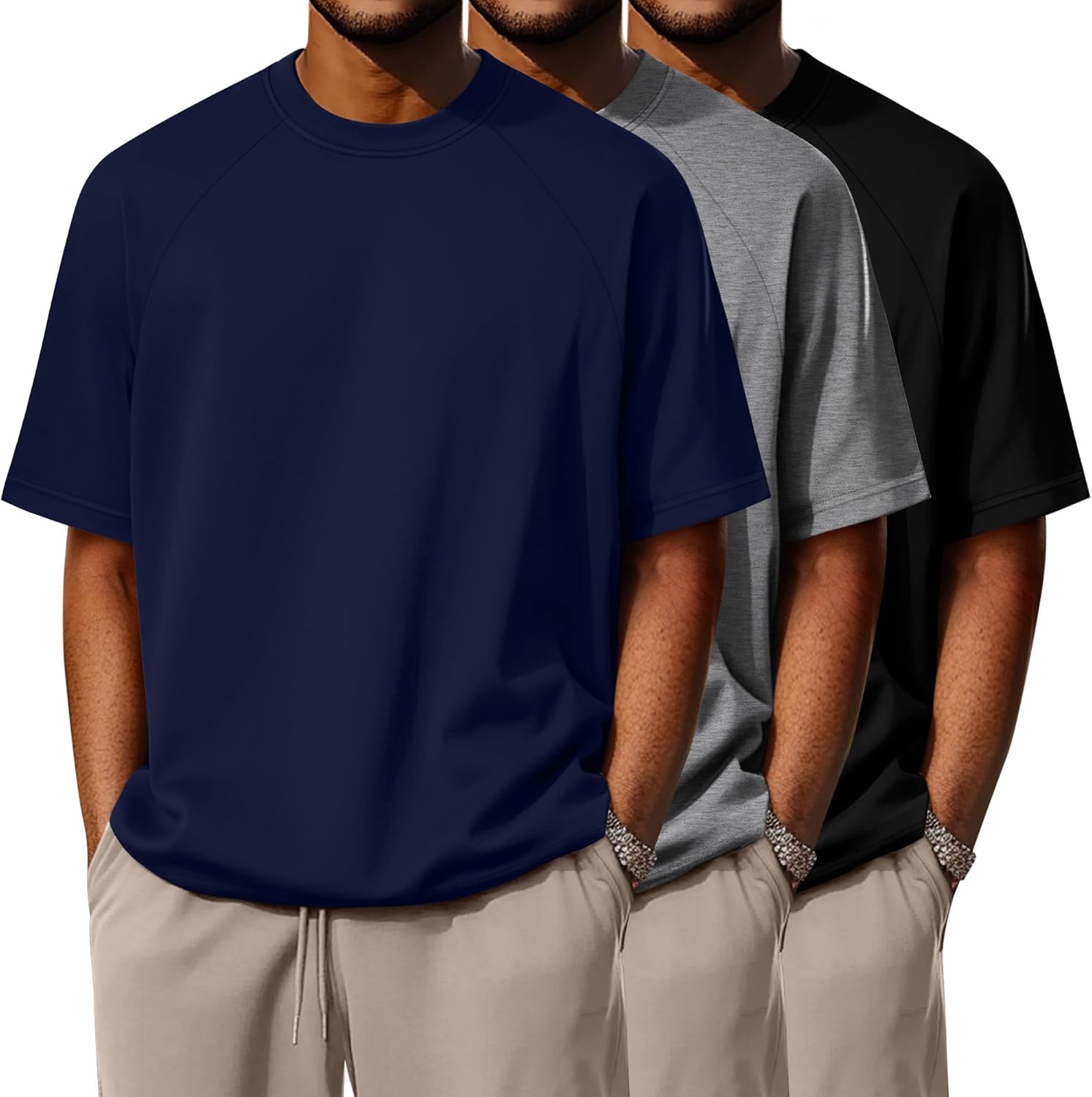 Features: Moisture-wicking for all the day comfort: The crew neck shirt for men features moisture-wicking properties to keep you cool and dry, making it perfect for sports and outdoor activities like golf, basketball, running, and more, ensuring comfort during every workout Multi-color selection, versatile style: Available in three classic colors of each pack, suitable for various occasions in daily life. Whether it is leisure travel, sports exercise, or daily matching, these basic colors are very versatile Care Instructions: Machine washable, hang dry as usual, low temperature ironable, do not bleach. The fabric does not shrink, wrinkle, or fade easily. There are many colors to choose from, you can choose your favorite color scheme to match your clothes according to your preferences. Stylish crew neck design: The round neckline adds a touch of elegance and fashion to t-shirts. Round neck t-shirts are suitable for people of all body shapes and face shapes. Whether worn alone or as an inner layer, they are very easy to match with other clothing Material: 95% Cotton, 5% Spandex Package includes: 3 x Men's t-shirts Notes: Manual measurement, please allow slight errors in size The color may have a slight difference due to different screen displays