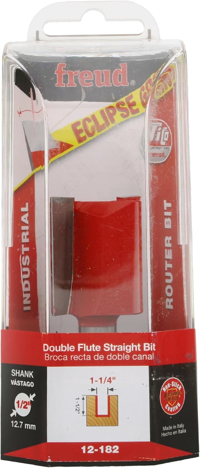 Product Description 1-1/4" (Dia.) Double Flute Straight Bit (Eclipse Grind) From the Manufacturer These bits cut smoother than other straight bits because of the precise shear and hook angles. End of bit relief allows for fast plunging. Covered by Freud's limited lifetime warranty.