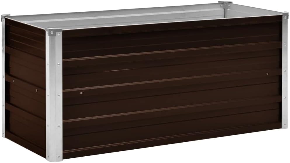 This metal garden raised bed would be a great choice Compatible with DIY enthusiasts to decorate their gardens, balconies or patios. The planter is deep and wide enough to hold a large amount of soil, as well as provide ample space Compatible with your plants, vegetables, herbs and flowers. Additionally, made of heavy-duty galvanized steel, the planter pot is weather resistant, making it very practical Compatible with outdoor use. The planter needs assembly. Color: Brown Material: Galvanized steel Dimensions: 39.4" x 15.7" x 17.7" (L x W x H) Open bottom