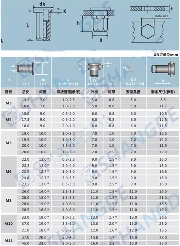M4-M10 Flat head Riveting Nut Full Hexagon Blind hole Water proofclosed mouth Rivets Nuts Galvanized Item specifics:Material: Stainless SteelIs customized: YesModel number: M4 M5 M6Diy supplies: PlumbingCertification: NONEOrigin: Mainland China