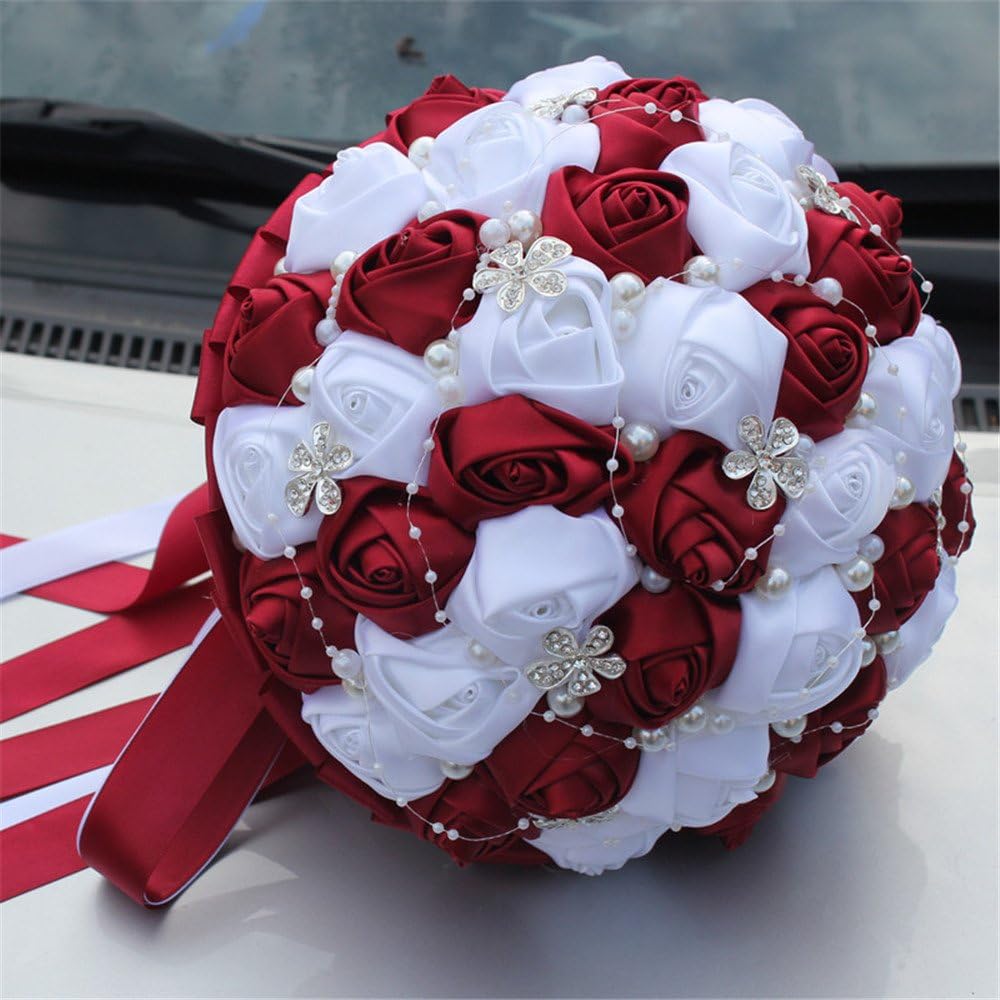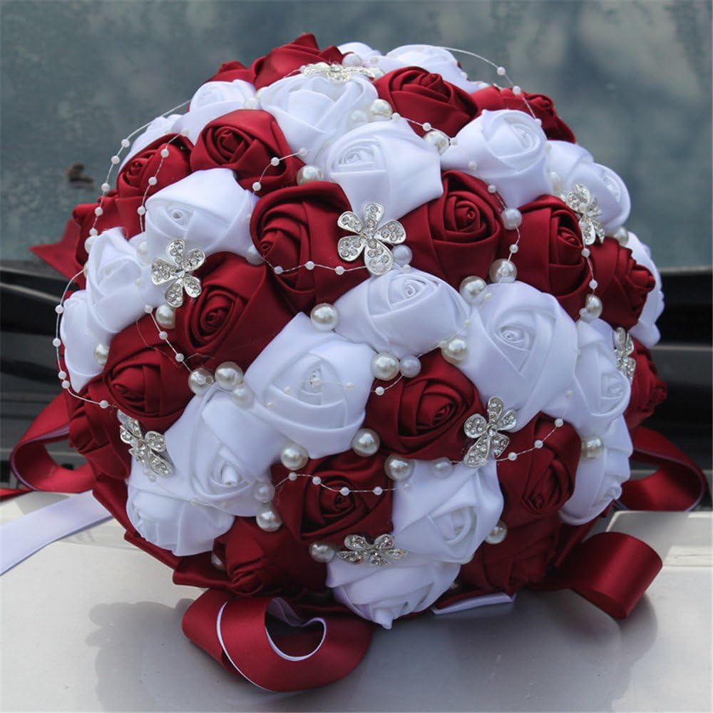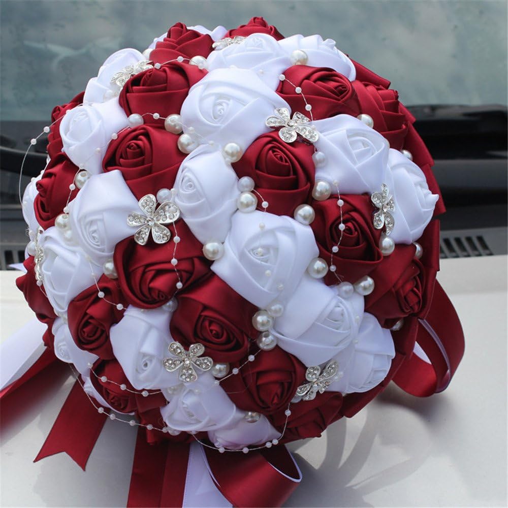 Description - Package included:1 x Wedding Bride Bouquet -Material - Rhinestone brooch, crystal, satin ribbon