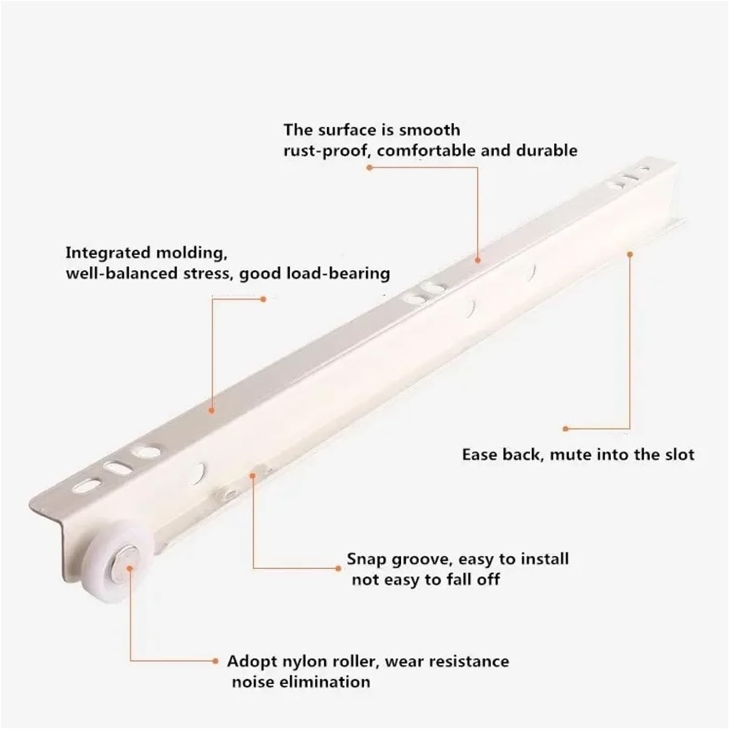 1.Soft-close push-open drawer slides are designed to push open quietly and smoothly and close automatically.2.The slides are smooth and durable, and easy to install.3.drawer slides feature a full-extension design that opens completely for easy access.Specifications:Product name: Drawer railSize: 10-18 inchesMaterial: cold-rolled steelScope of application: various wooden drawersDescription:Sturdy pulley, wear-resistant and damage-resistant, solid die-casting and polished, wear-resistant, anti-extrusion, smooth pulling and pulling, white powder coating surface, smooth and textured, and protective, long-term use without fading, two-section pull-out rails, you can pull out the entire cabinet to utilize the entire cabinet space and place more household items.Packing list:1 pair of slide two-section rails