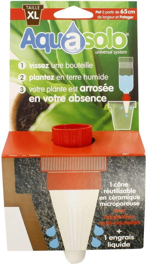 Do you want to enjoy a holiday without worrying about watering your indoor plants? Our Aquasolo system will take care of your plants while you are away. Product description : discover the "Ready to Use" self-contained drip irrigation system. Convenient and easy to use, simply attach a water bottle and plant the Aquasolo in the soil for autonomous irrigation of up to 28 days*. Ideal for potted plants, indoors or outdoors, this system allows you to take care of your plants whether you are temporarily away or as a permanent watering system. Thanks to its micro-porous ceramic cone, water is released gradually, giving the roots direct access to the nutrition they need. Simplify plant care with a self-contained no-drip watering system, for healthy, fulfilling growth, hassle-free! Country of origin: Made in France. Recommendation: To optimize the life of the Aquasolo, soak it in water before use (for 30 seconds) and water your plant before installation. Tip: To maximize the life of the Aquasolo, soak it in vinegar water, brush and rinse. For prolonged use, repeat this operation every 2 months. Finally, do not expose to frost. About Hozelock Created by Gardeners, For Gardeners: Roll up your sleeves and getting your hands dirty in the garden can be extremely rewarding. Our customers love to plant flowers and water them to watch their garden blossom. 60 years of experience in horticulture, Hozelock understands the joys of gardening and has created a range to help gardeners get the most out of this hobby.