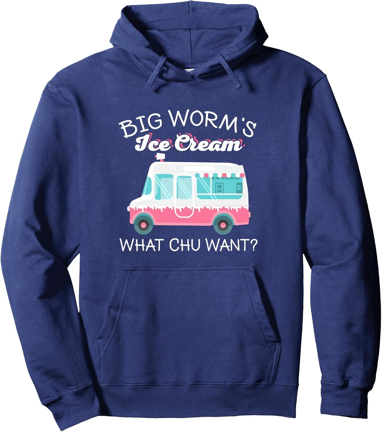 | Item Type Name | Ice Cream Truck Big Worm's Ice Cream What Chu Want? Pullover Hoodie, Adult Unisex, Navy Blue, X-Large |