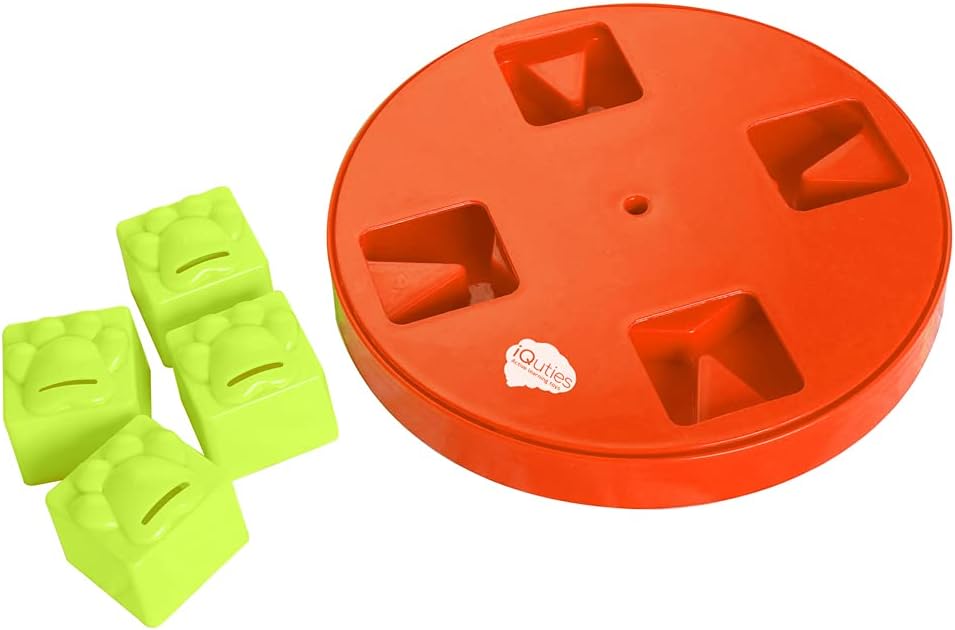 iQuties Active Training toys provide fun physical and mental stimulation for your pet. Their use exercises your dog's mind - reducing boredom and teaching problem solving skills. They can also help to redirect potential destructive behaviour into a positive outlet. Training your dog to learn sequential steps, the iQuties Active Training Puzzle Wheel is an advanced puzzle toy. Created with eight separate chambers to hide treats, your pet will need to remove each cup and then spin the wheel in order to access their tasty reward. The bright, eye-catching design features anti-slip pads at the base of the toy, and is more suited for intermediate or advanced learners. Use your pet's favourite, smelliest treat to get them excited to play and learn! Best suited to dogs aged 6+ months, who should be supervised at all times whilst playing with the Puzzle Wheel.