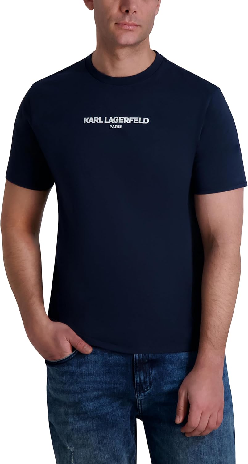 This Karl Lagerfeld Paris Men's Sportswear T-Shirt is a short sleeve crewneck karl logo t-shirt easy dressing
