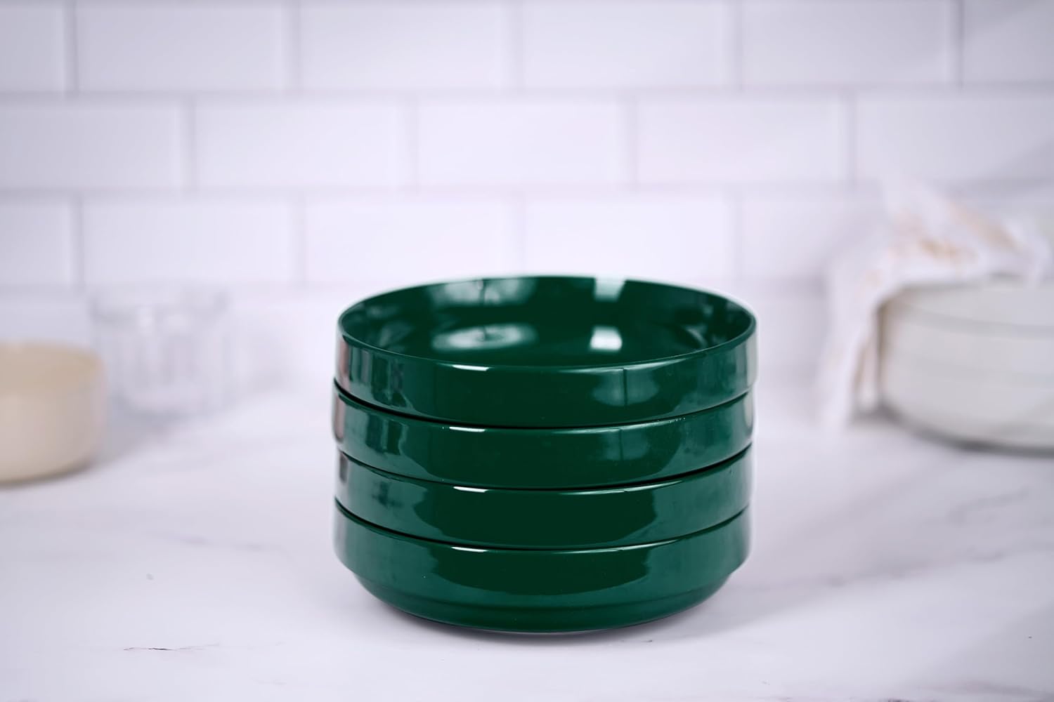 It's a bowl, it's a plate. it's both?! Wide and shallow, these versatile dishes are perfect for serving pasta, salads, desserts, and stews. Made with durable ceramic with a glossy finish and extra large 47 ounce capacity. These bowls stack snugly for space-saving storage. Pop in the dishwasher for easy cleanup.