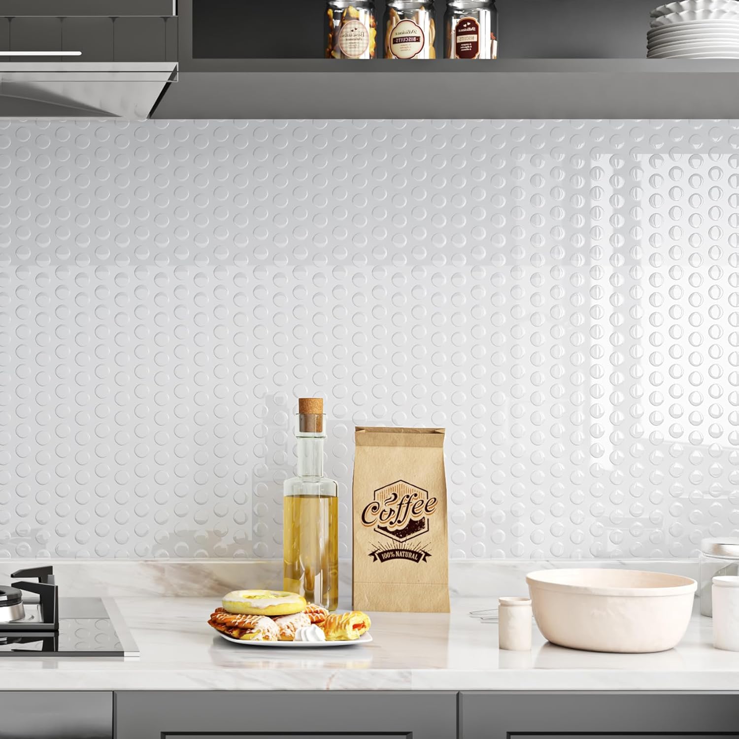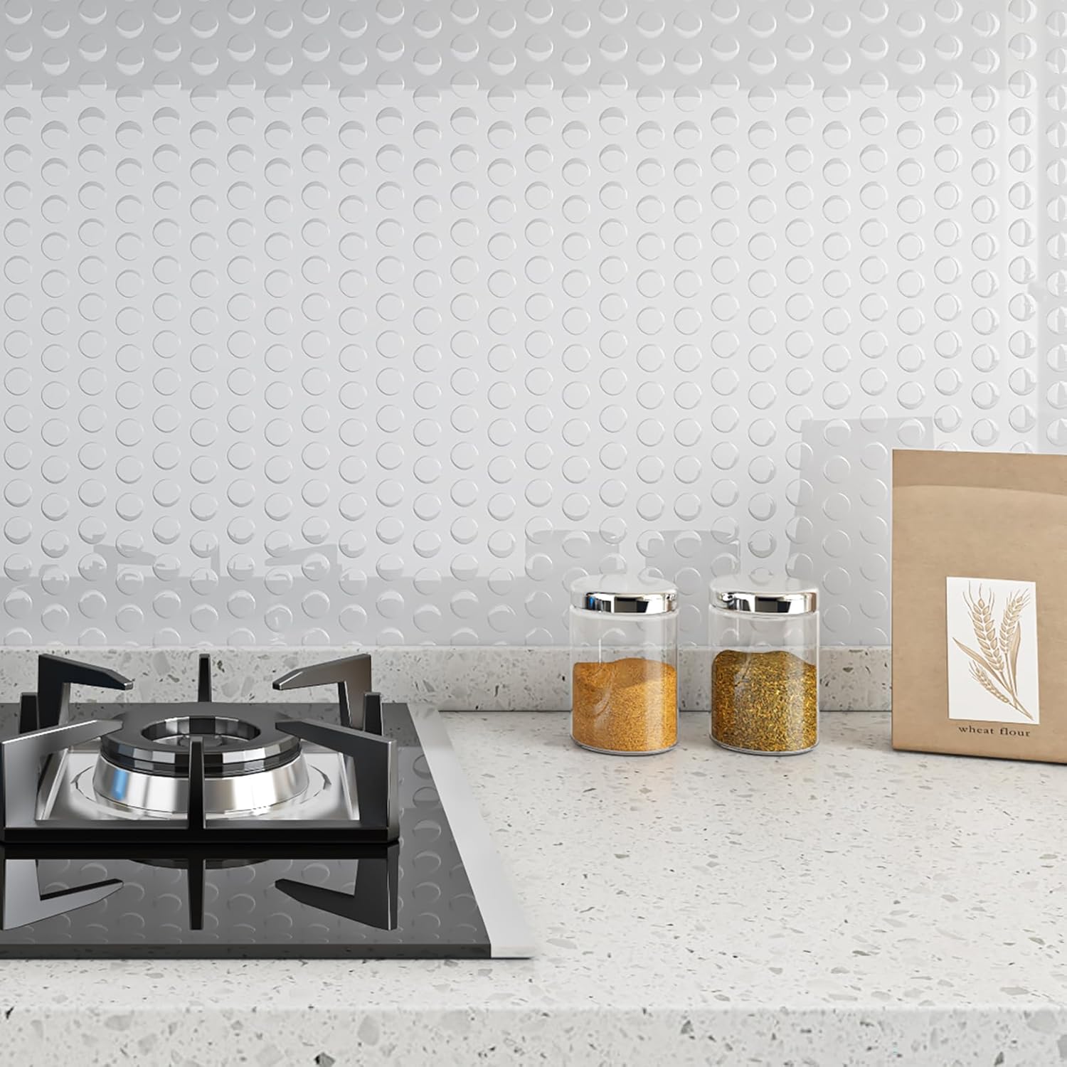 🏡 Detail: Qty:16-tiles, White peel and stick backsplash tile, mosaic penny tile design, easy to clean and cut, made of vinyl & clear gel, waterproof, removable, heat resistant, self adhesive. Size: 12x12 inch/tile, Thickness: 1.0mm. 🏡Peel and stick tile: The self adhesive back means you simply stick on the wall. The wall tiles are made of vinyl and can be adapted individually to the right size using a cutter knife. It's easy and inexpensive way to makeover your kitchen or bathroom in minutes!🏡Renter friendly backsplash: Use a hair dryer to soft the tile adhesive, start at the corner of the heated tile and use a putty knife to lift the edge, don't lifting it straight, peel it at a 30-degree angle to prevent any damage to the wall.🏡Heat resistant backsplash: Designed for kitchen wall and bathroom backsplash, the tiles are resistant to the heat of stovetops andthe humidity of bathrooms. Withstand kitchen temperatures without warping, cracking, or discoloring.🏡Multi-purpose: White peel and stick backsplash for bathroom, white backsplash tile peel and stick for kitchen, white peel and stick tiles for walls, white tile backsplash peel and stick for shower, back splash stick on tiles for behind stove, white back splash for kitchen wall, peel and stick wall tiles for laundry room, temporary backsplash for renters