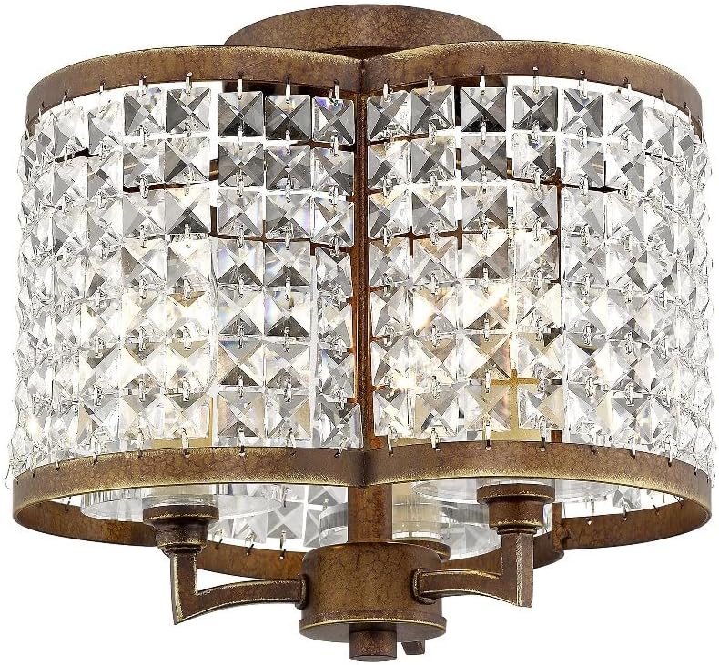 Crystal strands strung in a decrotive shade design define this classically glamorous semi flush mount in which the bulbs are completely shaded, allowing the light to shine through the K9 crystal for a warm, intimate lighting feel.