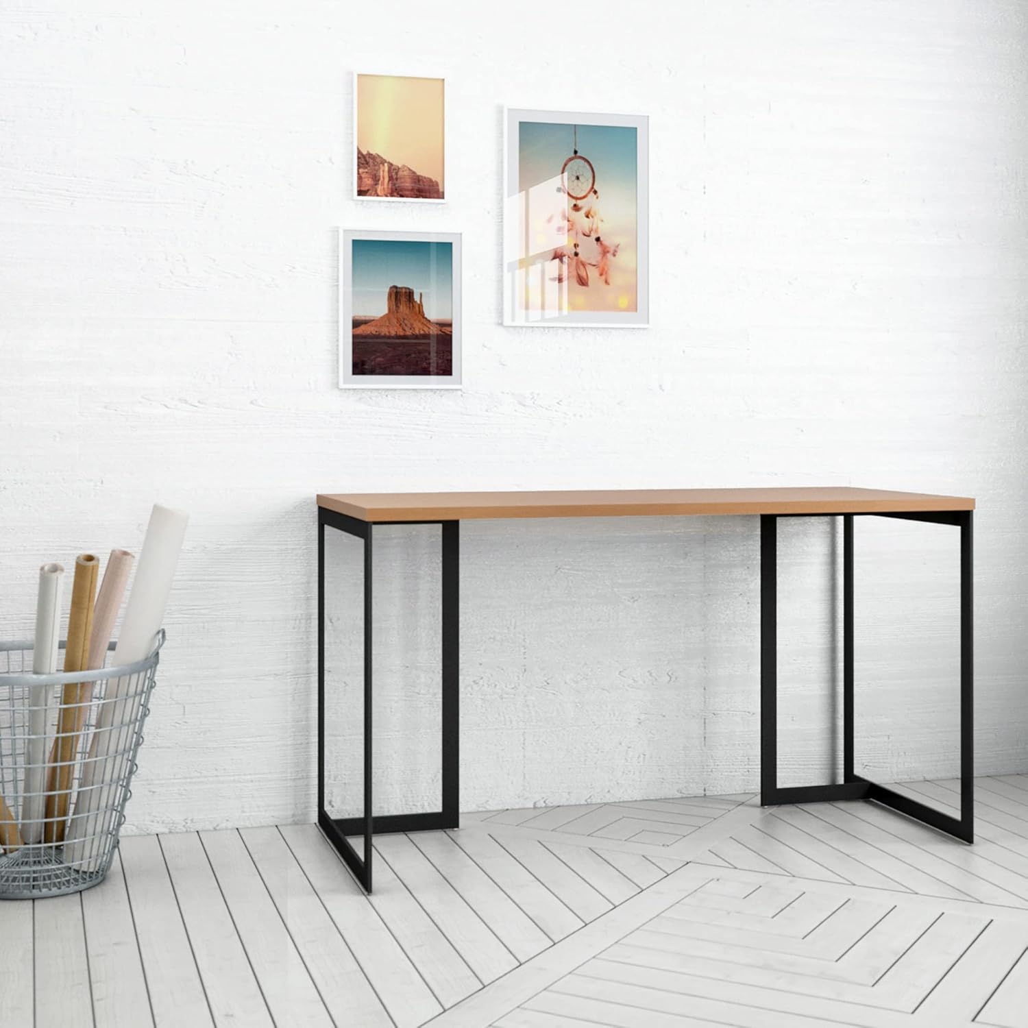 Whether you're working remotely or at the office, the Lexington desk ensures you hustle in style to close all the big deals. Lean toward industrial with a side of Mid-Century style? We've got you covered. Steel geometric legs offset by a warm maple finish add warmth and edge to any space. Plenty of worktop space for a laptop, tablets, files and more keep this desk comfortable and functional. Add framed photos, new plant, a decorative lamp, and favorite accents to bring light and warmth in.