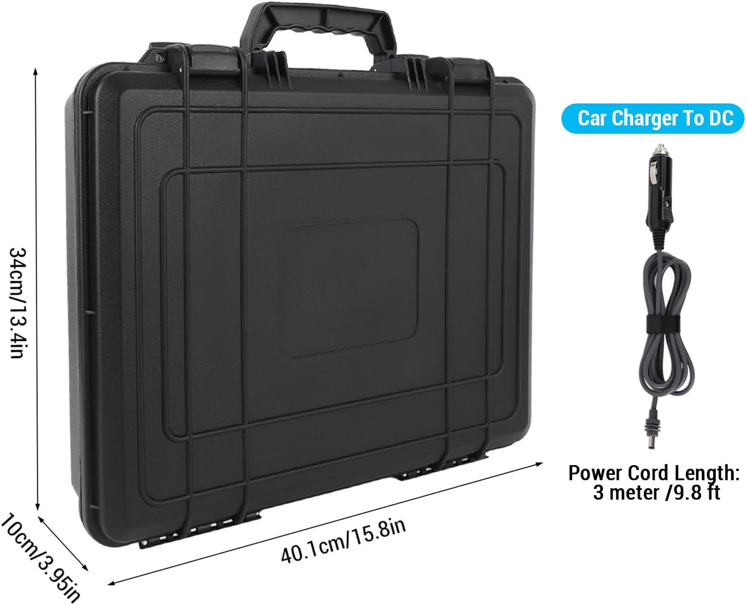 Spec: Item Type: Satellite Carrying Case Material: ABS, EVA, Electronic Car Charger To DC Power Cord Length: Approx. 3 meter /9.8 ft Product Size: Approx. 40.1x34x10cm/15.8x13.4x3.95in How to Use: Out of the box Package List: 1 x Carrying Case 1 x Car Charger Power Cord