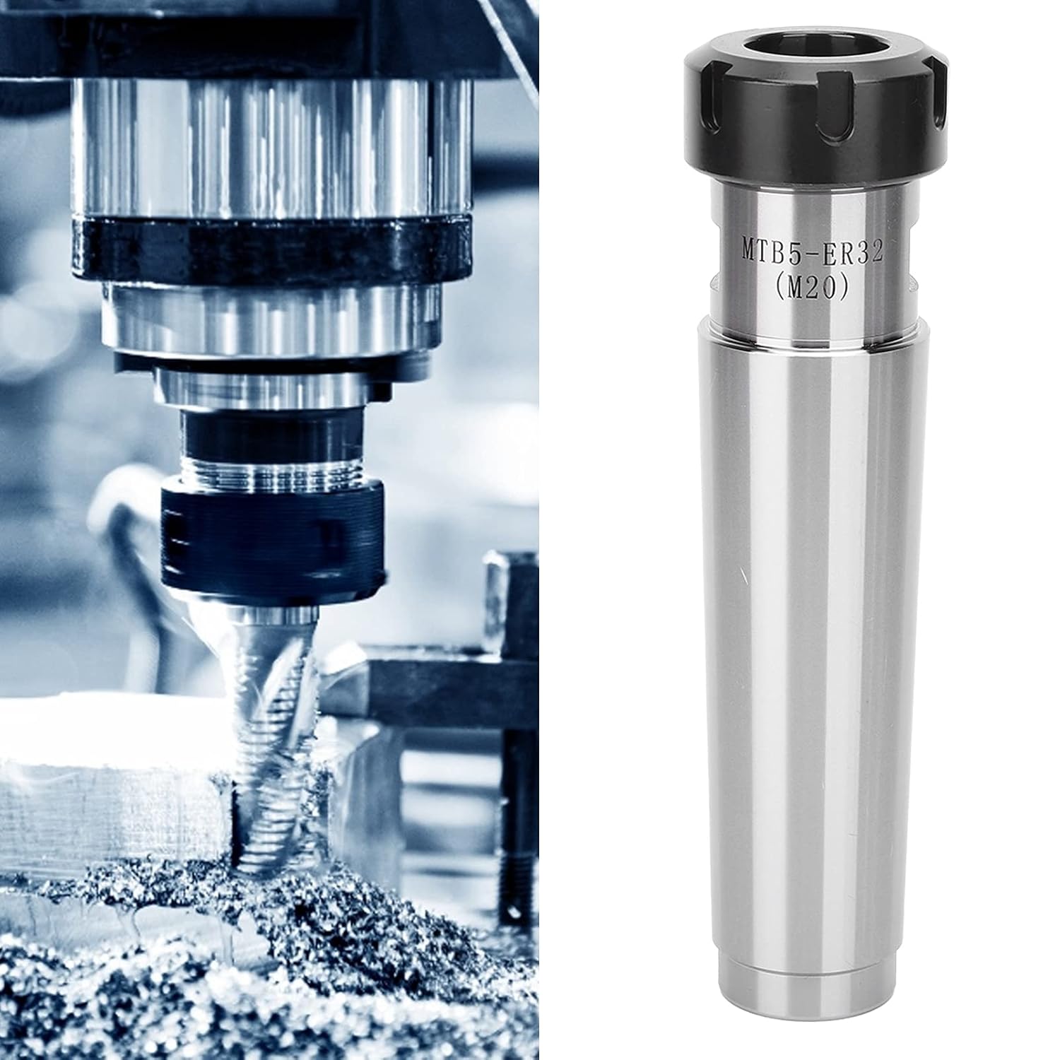 Morse Taper 5 ER32 CNC Tool Holder, 40Cr Steel Milling Chuck with M20x2.5 Thread, Rigidity Lathe Accessory for Heavy Duty Drilling and Boring