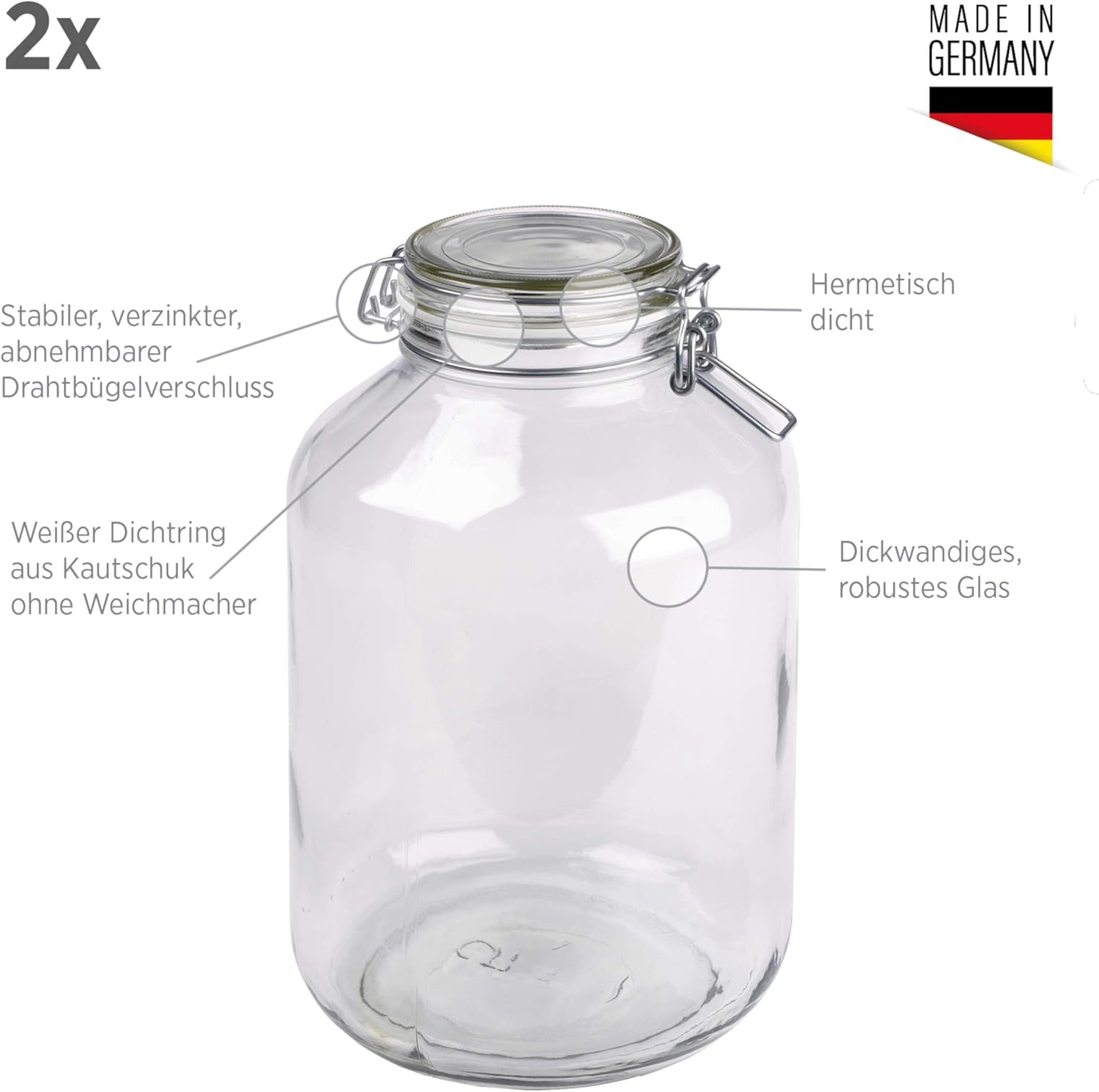 GOTHIKA - This series contains preserving jars in different sizes. The classic glass jars of the GOTHIKA series are provided with a white sealing ring which is 100% airtight. The glasses have excellent properties: they are suitable for baking and can even be frozen. However, one should avoid large temperature jumps. For example, do not put hot glass in cold water. It is not recommended to use it in the microwave or oil-containing foods. The glasses are dishwasher safe, the bails aren’t. This set of the GOTHIKA series contains two 4.8 litres large storage glasses with swing top