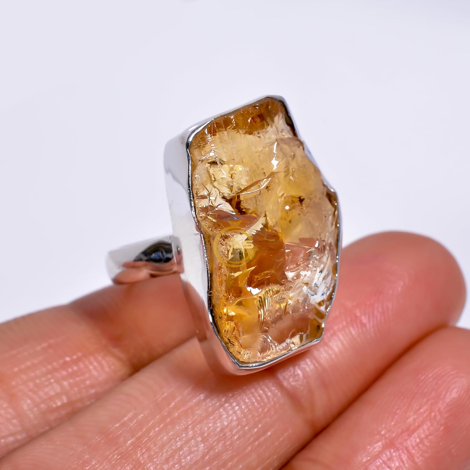 The raw citrine gemstone, with its vibrant golden hues, adds a touch of warmth and radiance to the ring. The ring itself is meticulously handcrafted from high-quality 925 sterling silver, ensuring durability and a beautiful shine. This statement ring is not only a gorgeous piece of jewelry but also a symbol of individuality and style. The raw citrine gemstone, with its organic and unrefined form, makes each ring truly unique. It's the perfect accessory to elevate any outfit and make a bold fashion statement. 》Product Details:- Product - Ring Metal - Pure 925 Sterling Silver Stamp - 925 Gemstone - Citrine Gemstone Color - Yelloe Gemstone Treatment- No Treatment (Natural) Product Weight – 5.40gm Approximate 》About Quality:- Our products are completely handmade and made of pure 925 sterling silver and natural gemstones, so don't worry about the quality, 100% customer satisfaction guaranteed. 》Please Note:- Because it is a natural gemstone, some slight variations in color and pattern are expected. 》Thank you for visiting my shop!