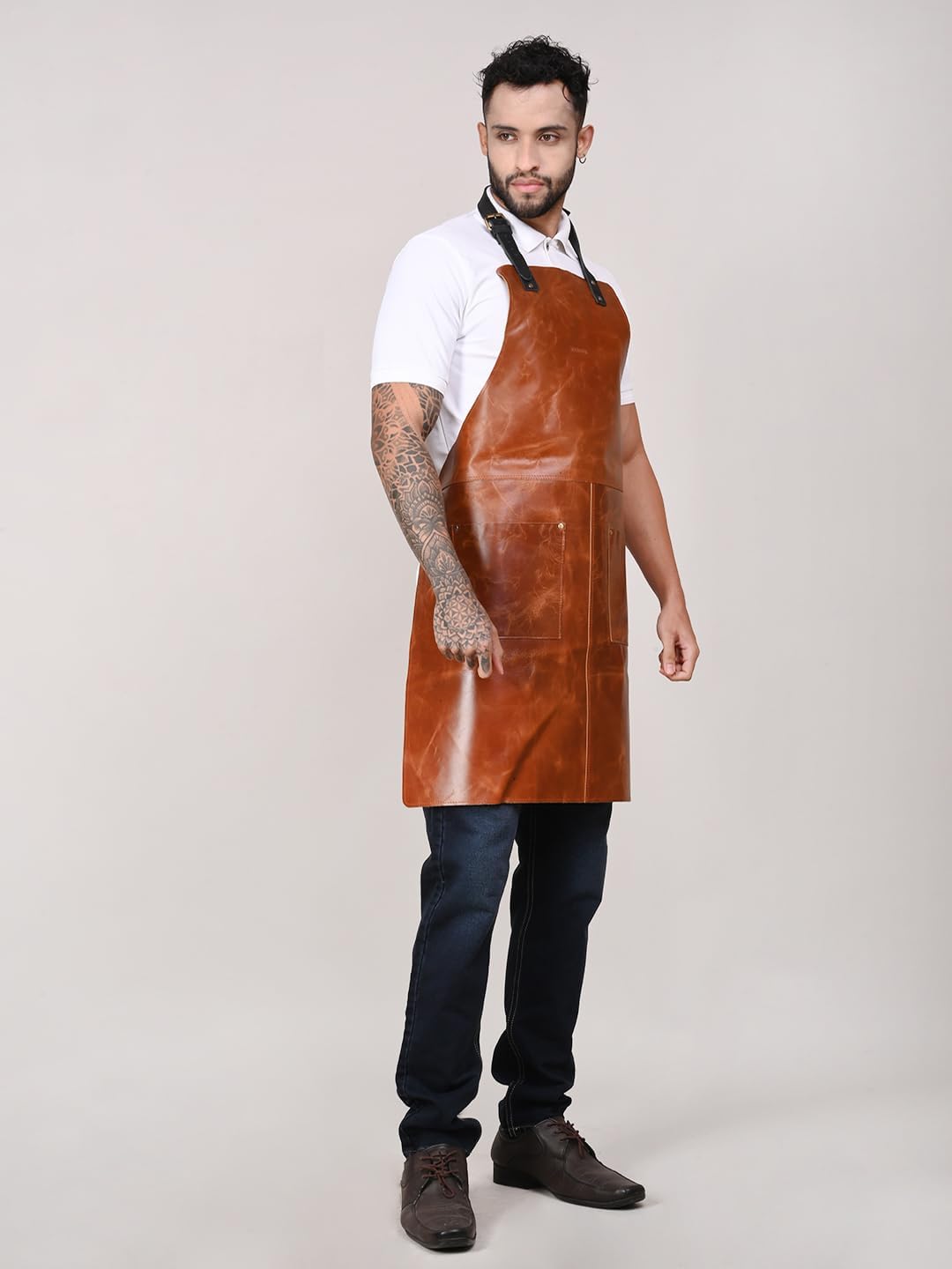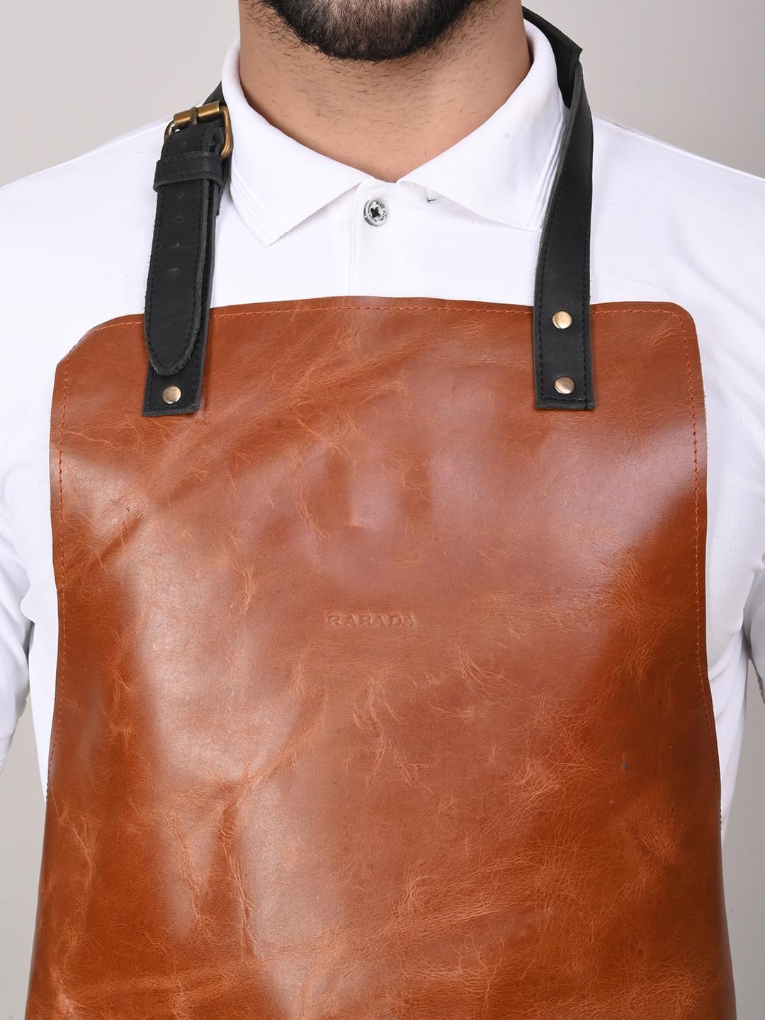 Rabada introducing Heavy Duty Cow Leather Apron – a versatile apron with durable work wear essential. Designed as a perfect woodworker's apron and can be used for all types of carpenters and Industrial wood workplaces. A welder Apron is made of fine leather and has high resistance to heat and flame. A perfect leather apron is a perfect BBQ enthusiast apron, Its sturdy leather and resistance to heat and flame make it the best apron for blacksmiths, and various industrial settings. Crafted from high-quality cow leather, this apron offers superior protection against heat and flames, ensuring safety in demanding work environments. Whether you're working in a workshop, handling welding tasks, firing up the grill, or managing industrial operations, our Heavy Duty Cow Leather Apron is your reliable companion. Invest in quality, comfort, and safety for your work wear needs.