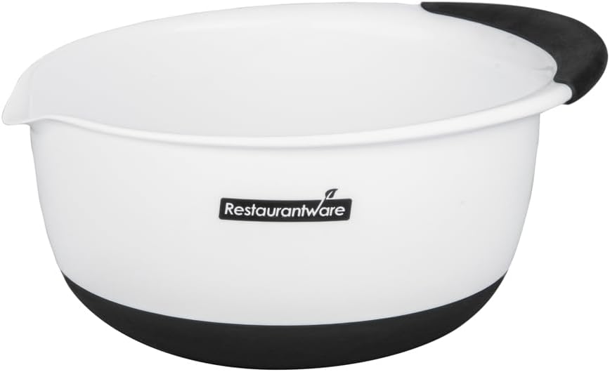 Achieve seamless mixing with this ergonomic solution for your kitchen. The Comfy Grip Non-Slip Mixing Bowl Set boasts a slip-resistant rubber bottom to prevent spills, ensuring stability during busy prep hours. With its integrated pour spout, these plastic mixing bowls facilitate precise, mess-free pouring of batters and sauces, enhancing cleanliness and efficiency. Crafted from durable plastic, these bowls are built to withstand the demands of high-traffic kitchens, offering long-lasting service without the risk of breakage. This nesting mixing bowls set includes three different sizes, accommodating various cooking and mixing needs, from small batches to large-scale preparations, while the nesting design allows for compact storage, saving essential kitchen space. Elevate your cooking process with these versatile and resilient tools, perfect for bakeries, restaurants, and catering services. Each order includes 1 Comfy Grip Non-Slip Mixing Bowl Set.