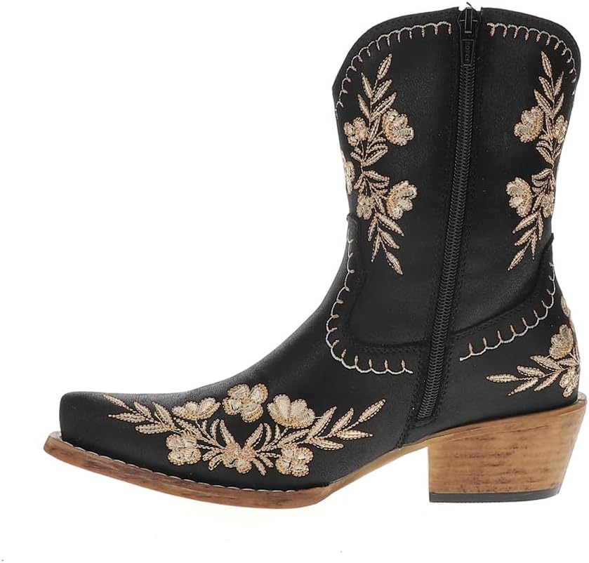 The Wynona Bootie Features An Intricate Boho Floral Design On Faux Leather Shaft And Vamp, Inside Zipper For Easy On And Off, And A Padded Insole For Added Comfort.
