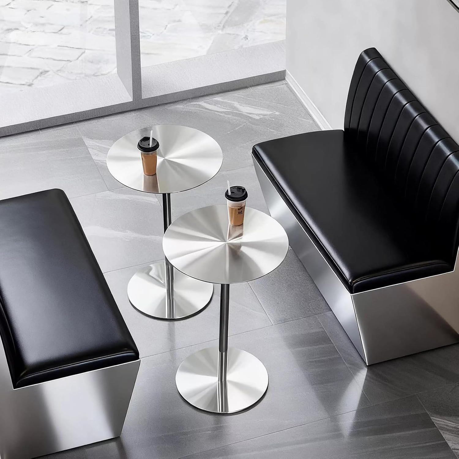 Round Dining Table,Stainless Steel Side Table,Round Bar Table Modern Bistro Pub Tables,Stainless Steel Cocktail Table Breakfast Desk,small coffee table,For restaurants, dining tables, cafes, barsSpecifications:Name:Stainless steel round tableMaterial: Stainless steelColor: Silver;Weight: 24 poundsStyle:modernPackage includes:1 * Round Stainless Steel Dining Table