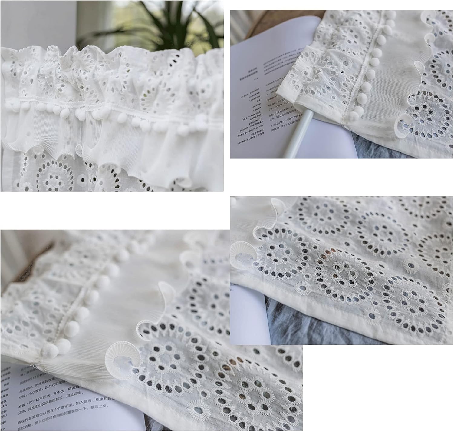 ✔ Very nice stylish bistro curtain kitchen curtain prefabricated curtain disc curtain for your living room, children's room, kitchen or coffee house. The exquisite design with hollow decoration provides texture, style and atmosphere for curtains and home decoration. ✔ Attached to the bottom edge of the window, it can prevent unwanted things from outside and still offer a clear view from the inside. This is an excellent alternative to fashionable decorations, especially smaller windows. ✔ Specification - Name: Cafe Curtain - Material: cotton - Color white - Size: width x height (W x H) 100X40cm, 150X40cm, 150X50cm, 150X60cm, 150X70cm, 200X40cm, 200X50cm, 200X60cm, 250X50cm, 300X40cm - Hang up: The drawbar allows the curtain to be hung up on the curtain rod quickly and easily. - Washing: Short curtains can be gently washed in the washing machine at 30 ° C. ✔ Notes 1. The curtains are cut by hand, with a distance of about 2-3cm. Please understand. 2. The width of the curtains should be 2 to 2.5 times wider than the window for the best effect. Note: The size marked is flat, not folded. 3. In order to achieve the desired effect, please iron the curtains before hanging. 4. If you are not satisfied or have any questions, please feel free to contact us. Our customer service representative will get back to you within 24 hours.