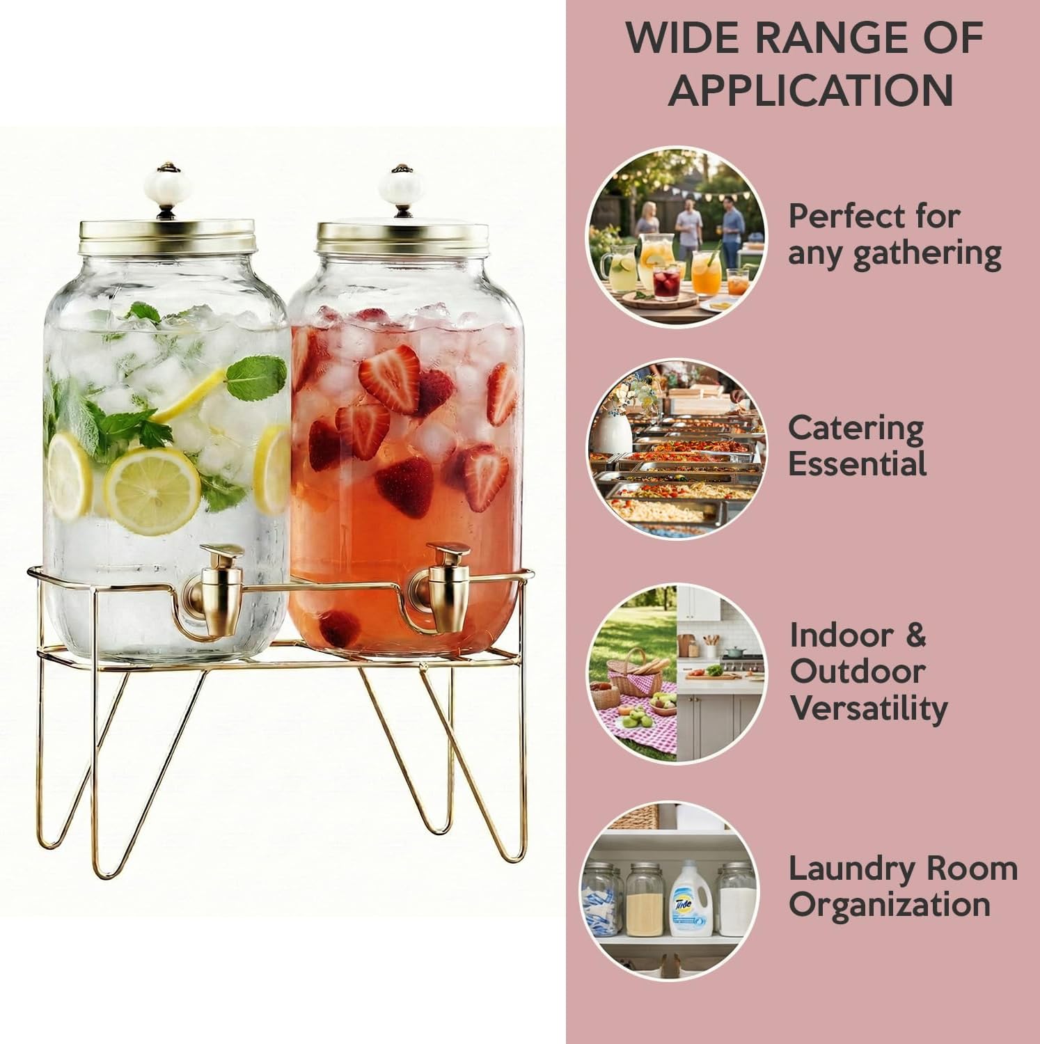 HIGH CAPACITY BEVERAGE DISPENSER – Gorgeous Crystalline Glass Container Lets You Display & Serve Cold Drinks for a Variety of Occasions; 0.8-Gallon Capacity Each for Large Batches of Lemonade, Iced Tea, Punch, Mixed Drinks & More