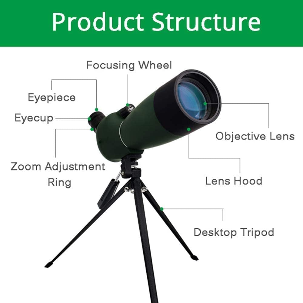 Product Name: Astronomical Telescope Product Type: Angle Spotting Scope Magnification: 25x-75x Prism Glass: BK-7 Objective Lens Diameter: 70mm Eyepiece Diameter: 15mm Prism Type: Porro Lens Coating: MC Field of View: 64-43 ft/1000 yds Exit Relief: 16-14mm Eyecup Type: Fold Down Close Focusing Length: 8m Waterproof: Yes (IP65) Anti-Fog: Yes Net Weight: 910g/32.12oz Dimensions: 360x92x145mm Note: Failure to use a telescope to observe the sun may cause permanent damage to your eyes. Children under 10 years old should use it under parental supervision. Note: The product size is measured manually, so there may be some errors, please refer to the actual product. Product photos. Please forgive me.