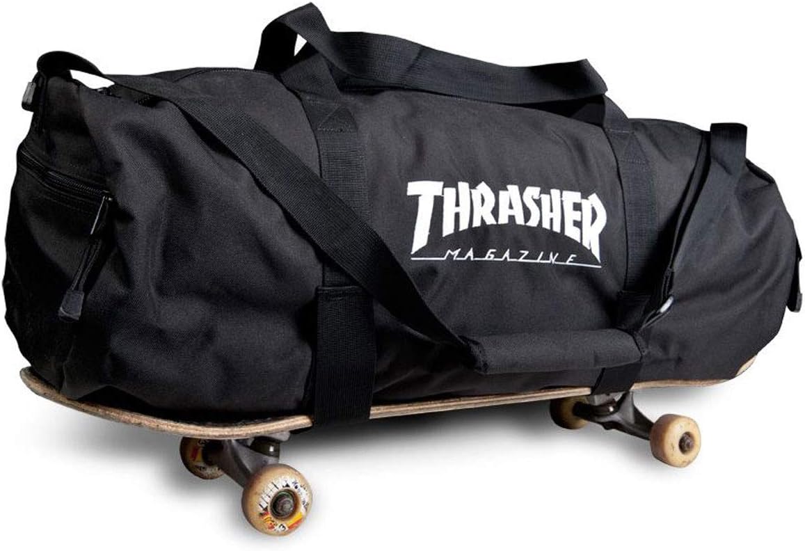 Pack all your best shit in the Thrasher Logo Skate Duffel Bag and hit the road. It's a heavy-duty duffel made with a durable zipper. Oh, and you can fit your board in it or strap it to the bottom just in case airport security tries to front.