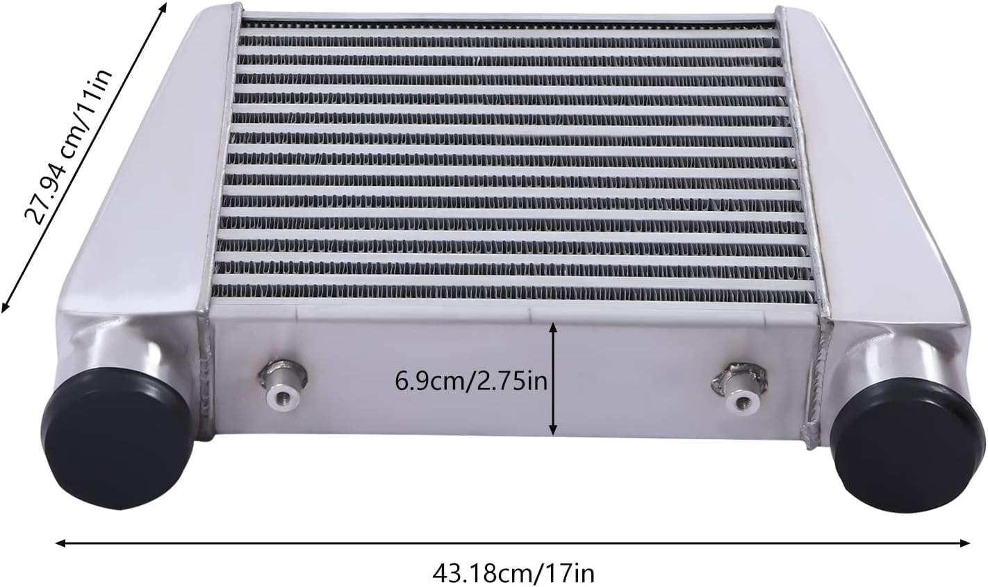 SpecificationsApplicable Models: UniversalModel:YCZ-034Condition: NewMaterial: AluminumColor: SilverSurface Finish: PolishedWay of Use: Direct ReplacementInstallation Position: Under the Front of the CarInlet and Outlet Size: 6.35cm/2.5inPackage Size: 43.5*37*10.5cm/17.13*14.57*4.13inProduct Size: 43.18*27.94*7cm/17*11*2.75inGross Weight: 2.8kg/6.17lbsFits (As a Reference)For all carsHighlightsBrand New, With High QualityStable PerformanceLong Service LifeExquisite WorkmanshipLightweight DesignIncrease Air FlowStrong and DurableDirect Replacement Trouble-free InstallationPackage Included1* IntercoolerNotes1.We strongly recommended professional installation.2.Installation manual is not included.3.Please make sure it will fit your machine before purchasing it. Please check pictures for more details.4.Please allow for slight color differences caused by shooting light and errors caused by manual measurement, and make sure you don't mind before ordering.