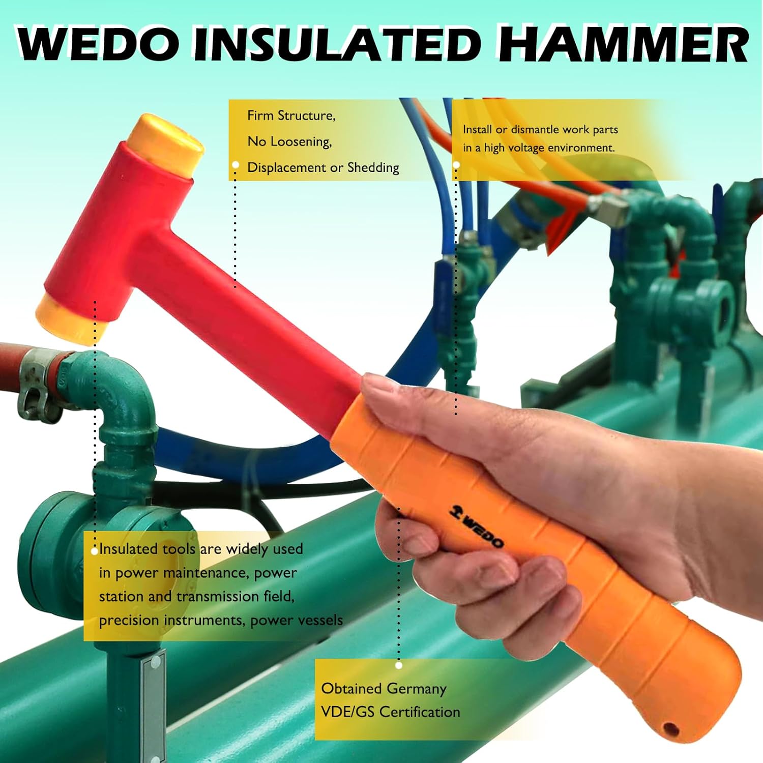 PRODUCT STANDARD: Insulated Non Rebound Hammer is produced according to IEC60900 Standard, and in accordance with Germany VDE Certification. Before ex-works delivery, all tools must pass 10000V AC test(10 times of the rated voltage).DURABLE AND QUALITY:Insulated Non Rebound Hammer when it is striking without rebound during the use of tools.Its insulation material Anti-burn,High & Low Temperature Resistant.Whole Firm Structure,Hammer head No Loosening, Displacement or Shedding.APPLICATIONS: Insulated Non Rebound Hammer is Widely used in power maintenance, power station and transmission field, precision instruments, power vessels, automatic switches and other installation and maintenance operations, which can effectively protect workers from electric shock during the use of tools.SAFETY AND Ergonomic DESIGN: WEDO INSULATED TOOLS ARE Single-head structure, Exposed metal part should be as little as possible, Flange on insulated handle, Insulation entirety, no crack or breakage, No joint gap between assembled insulated Tools, Designed according to manual mechanics, comfortable to hold.Service: WEDO TOOLS has been highly praised by our new and old customers because of our user-friendly design concept, continuous improvement of excellent quality and after-sales services. WEDO Products have been exported to more than 100 countries and regions. To enhance customers’ satisfaction, we set up service centers in Germany, Russia, South Korea, Singapore, Canada, the United States, the united Arab emirates, in order to provide timely after-sales service.