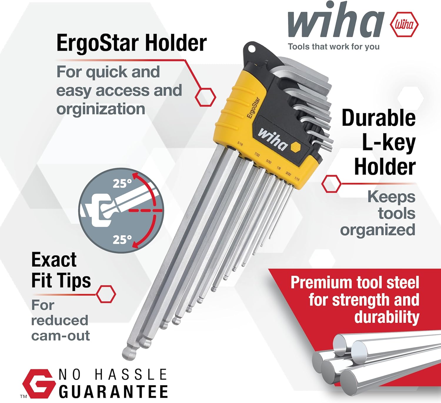 Wiha 66988 ErgoStar Ball End Hex Inch L-Key Set, 13 Piece