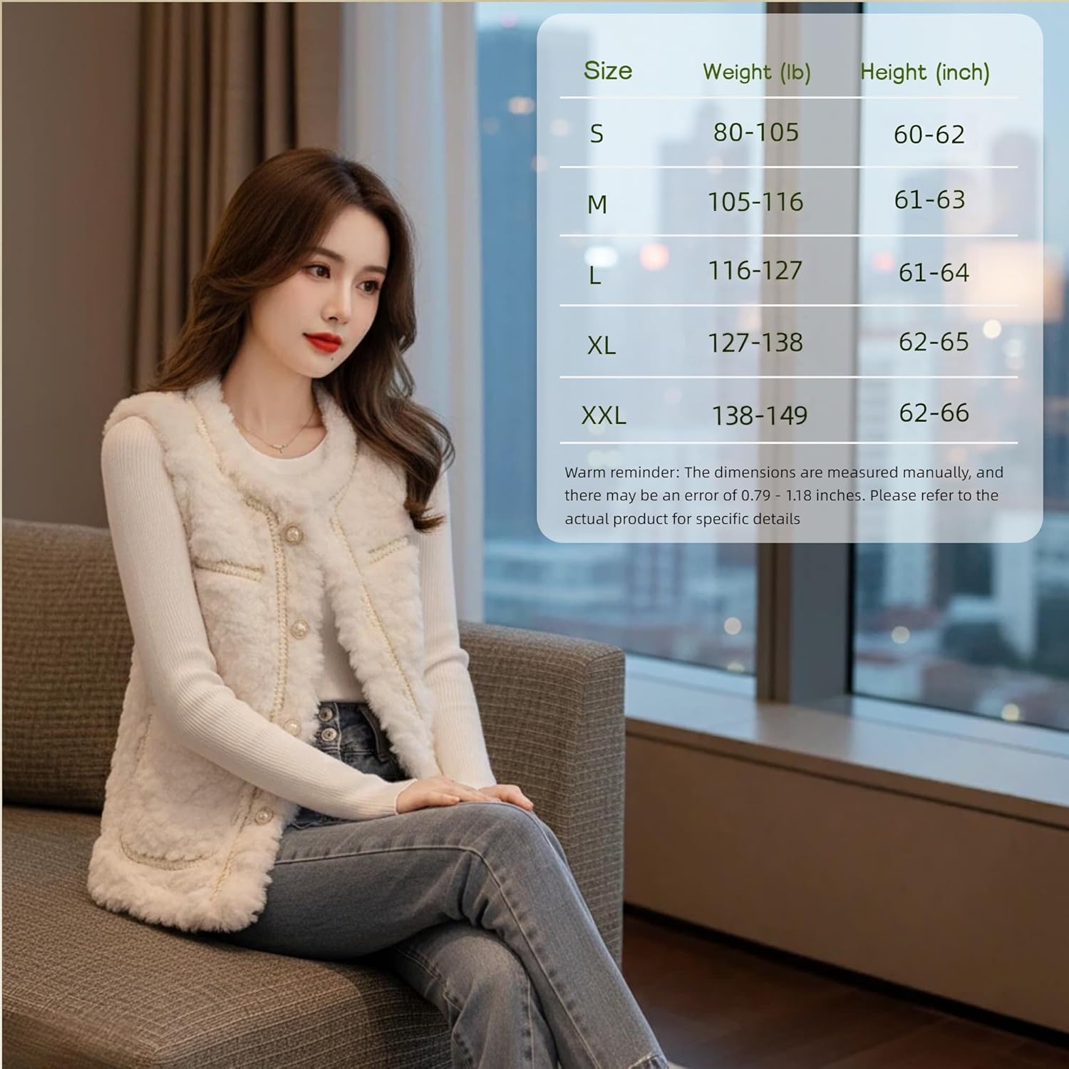 | Item Length Description | Hip-length Vest With Sleeveless Design |