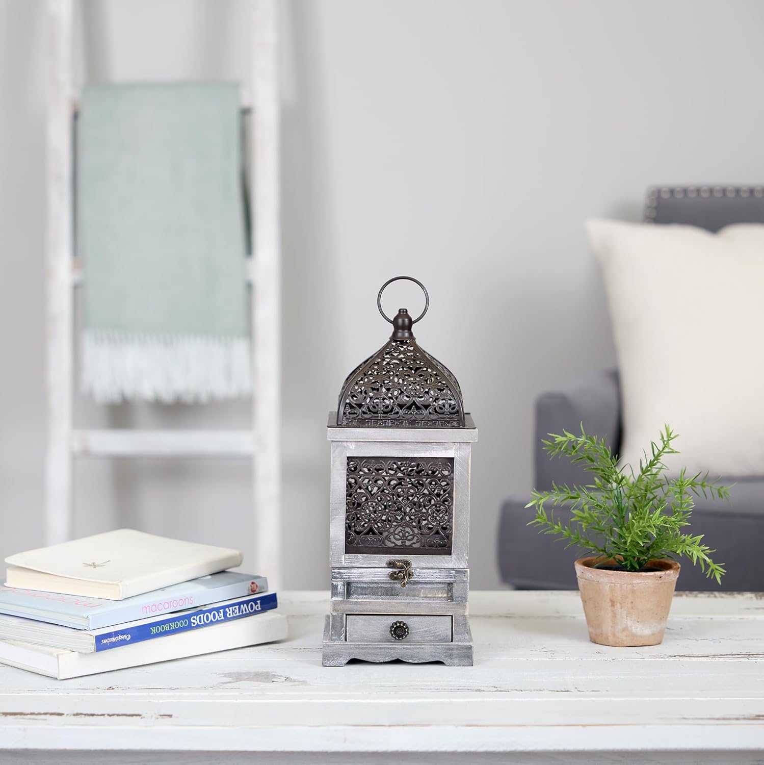 Place a candle or LED of your choice inside the lantern to illuminate your space in a soft and serene glow. Use to create a centerpiece for parties or special events, display on a countertop or coffee table, or light up your outdoor space with flickering light. This lantern is the perfect way to enhance your home's decor!